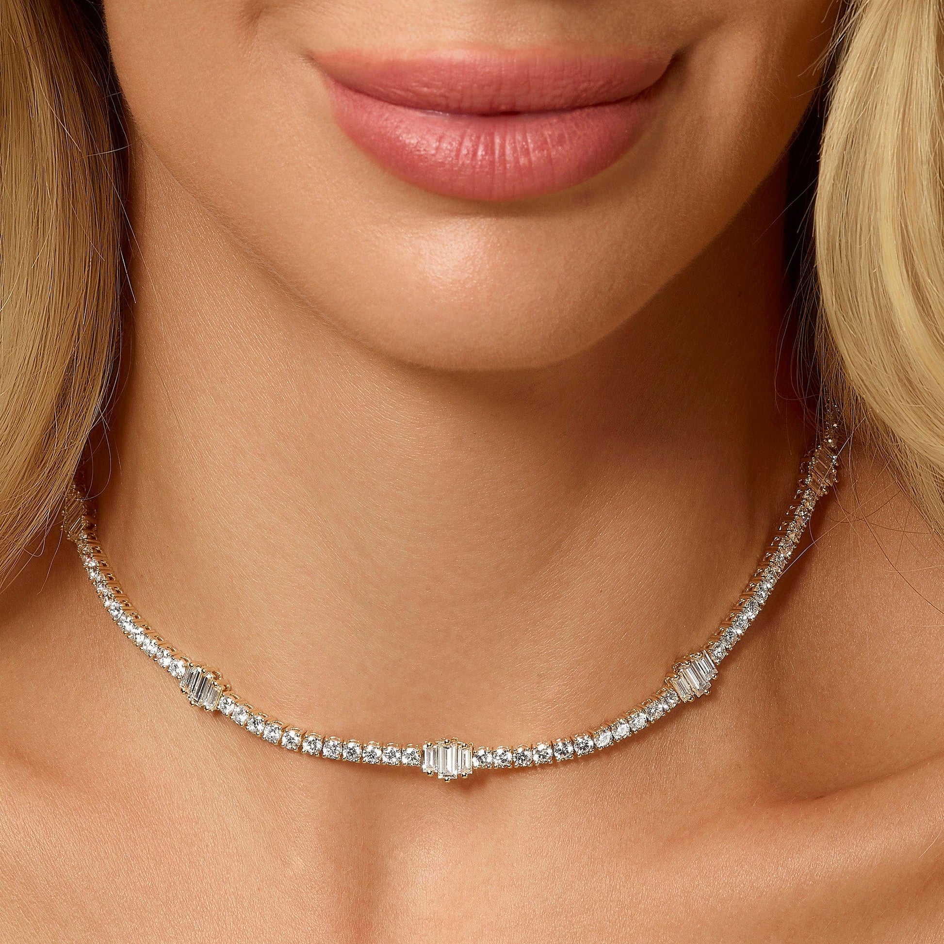 10.76 Carat Round & Baguette Lab Grown Diamond Tennis Choker Necklace