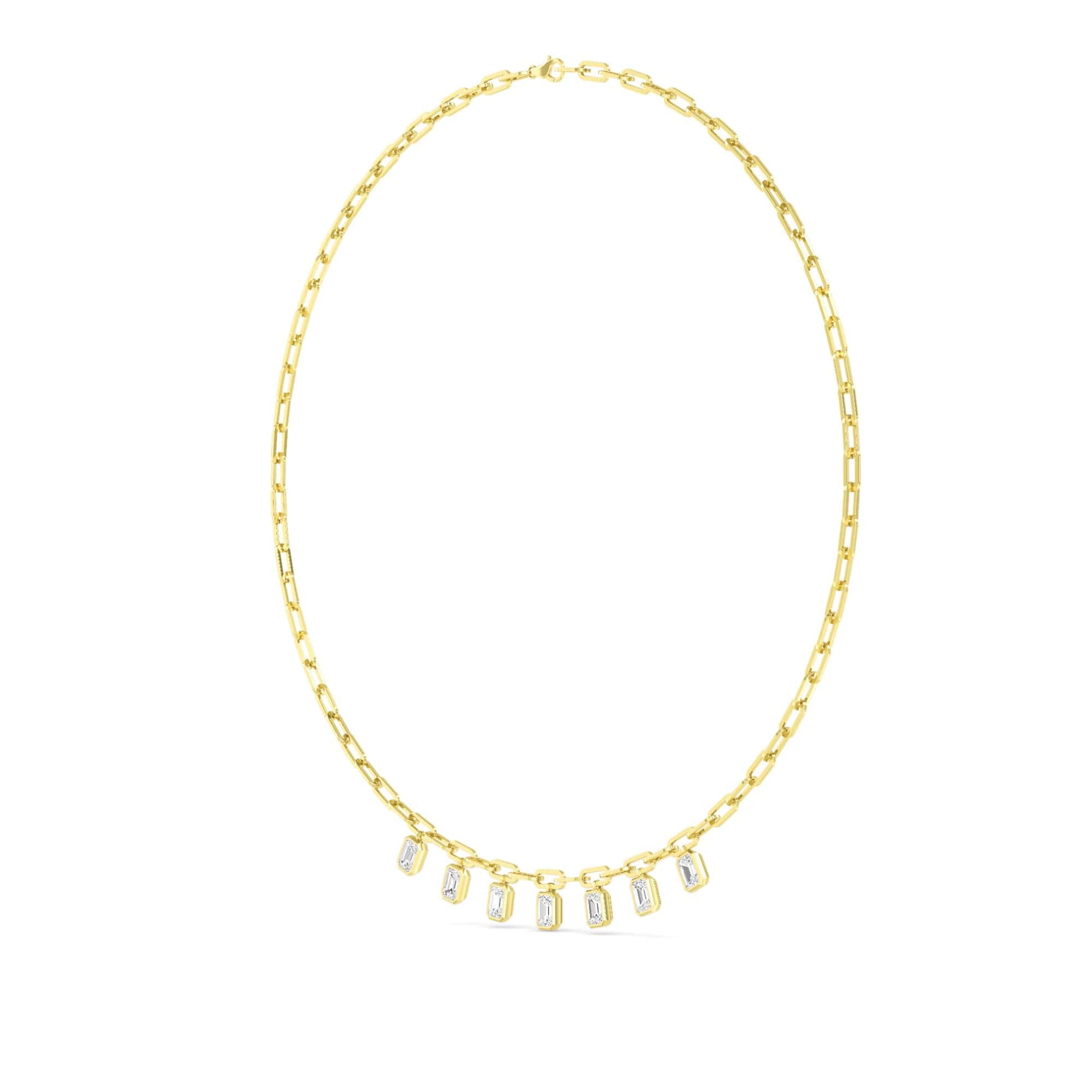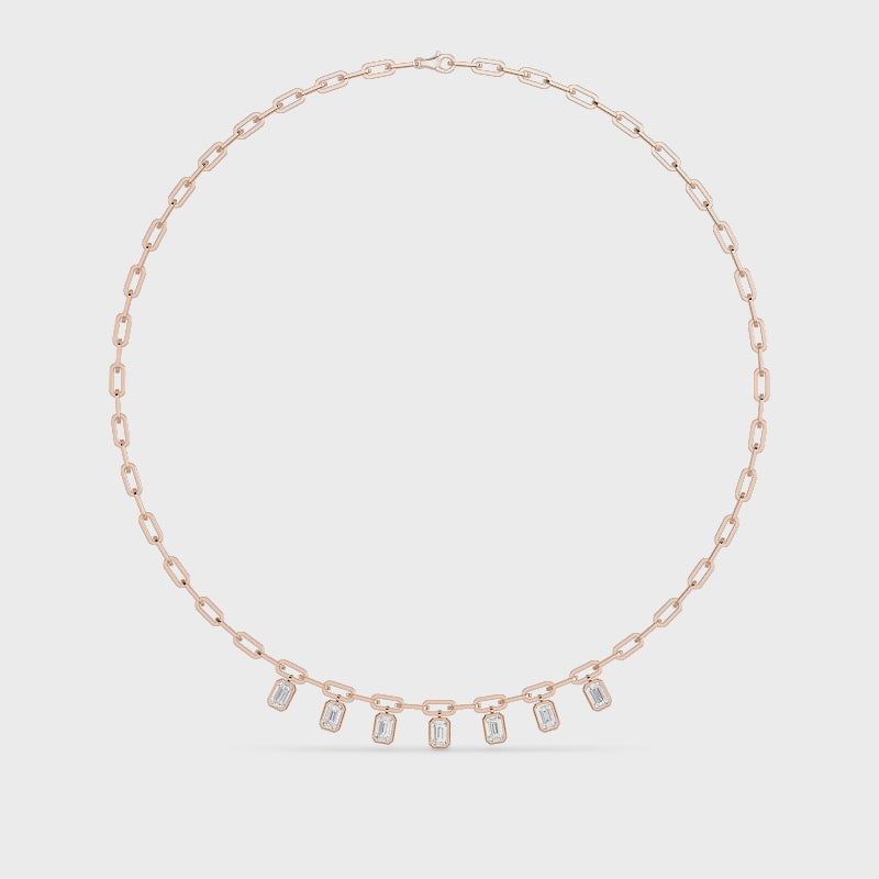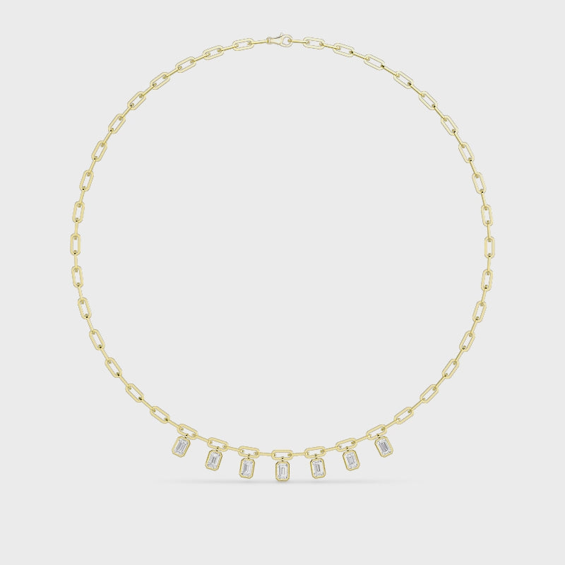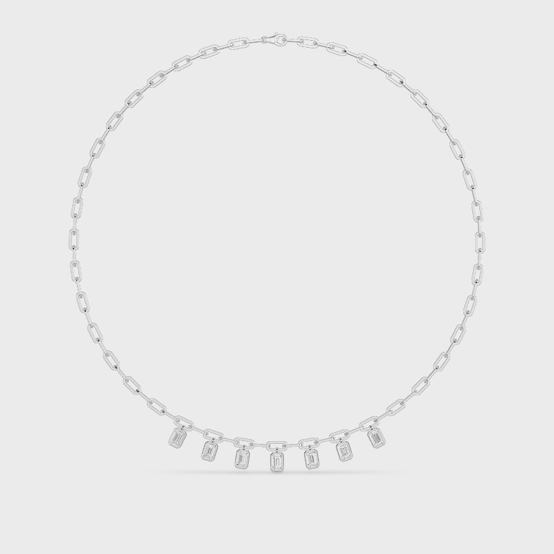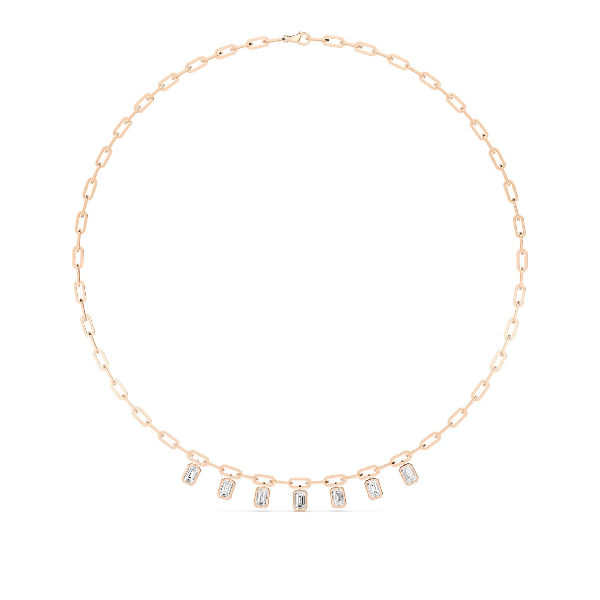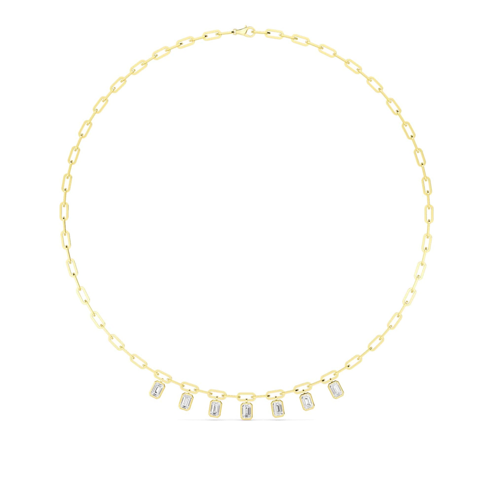 3.50 Carat Emerald Cut Lab Grown Diamond Paper Clip Bezel-Set Necklace