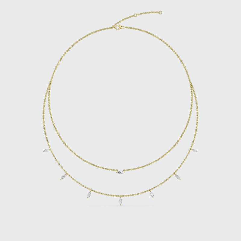 1.58 Carat Two-Layer Marquise Lab Grown Diamond Necklace