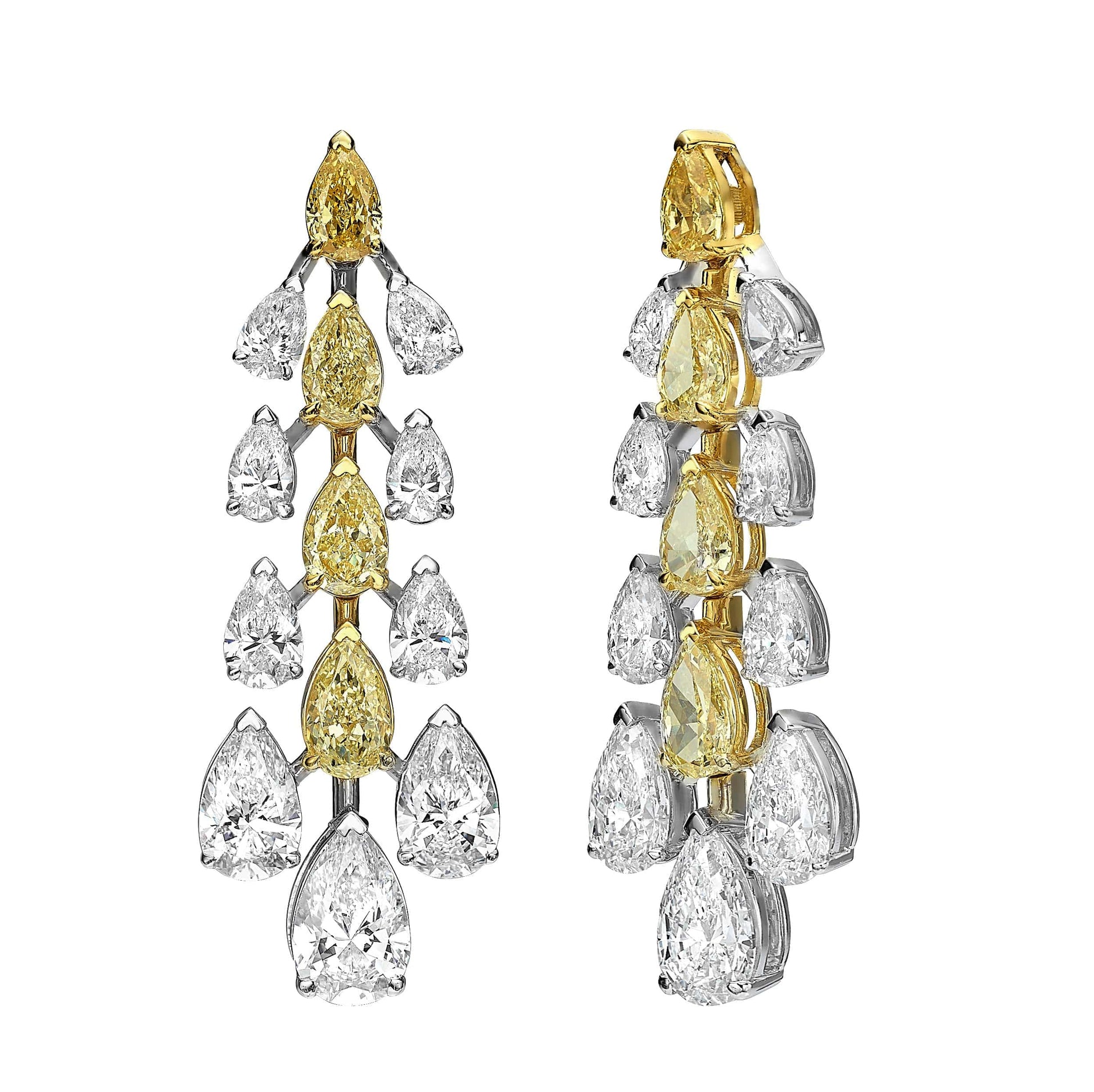 16.29 Fancy Yellow & Colorless Pear-Shaped Diamond Drop Earrings 14K Gold