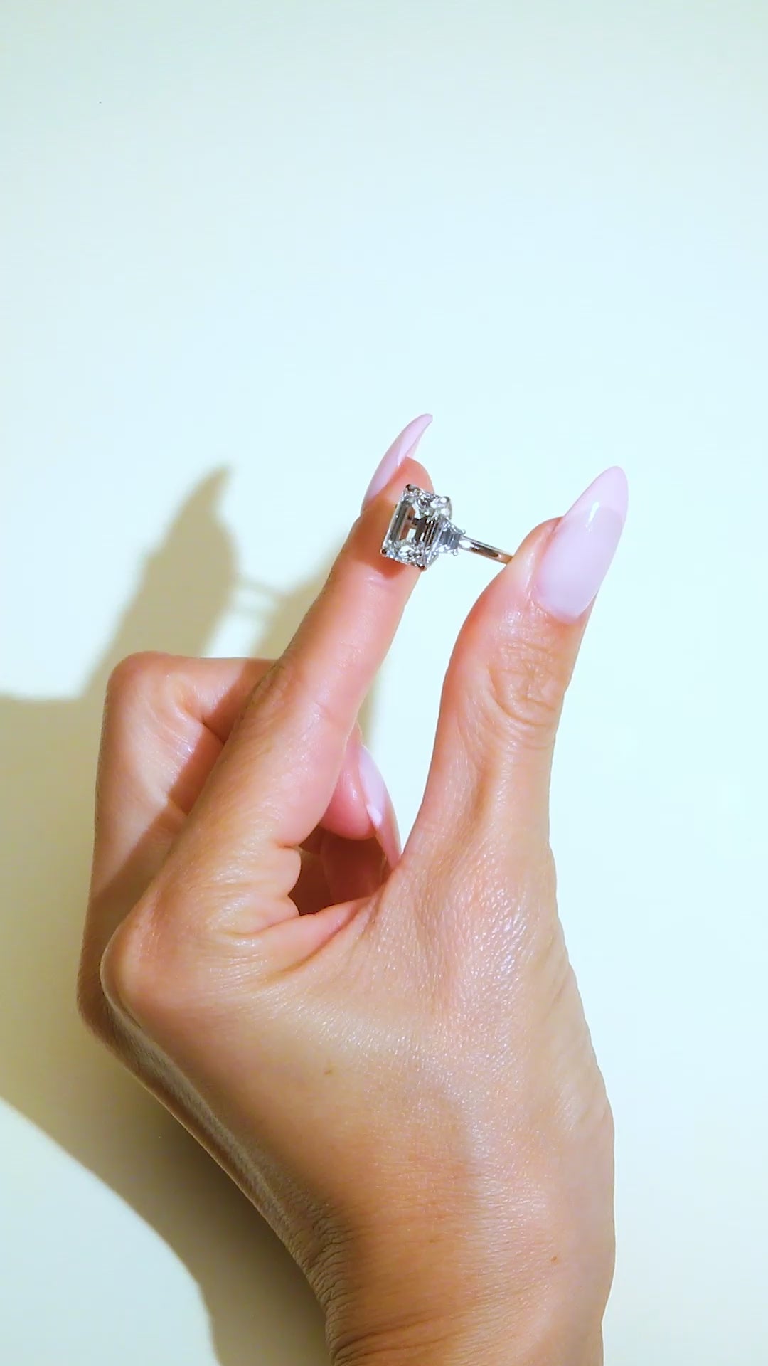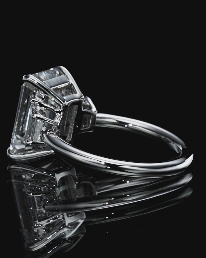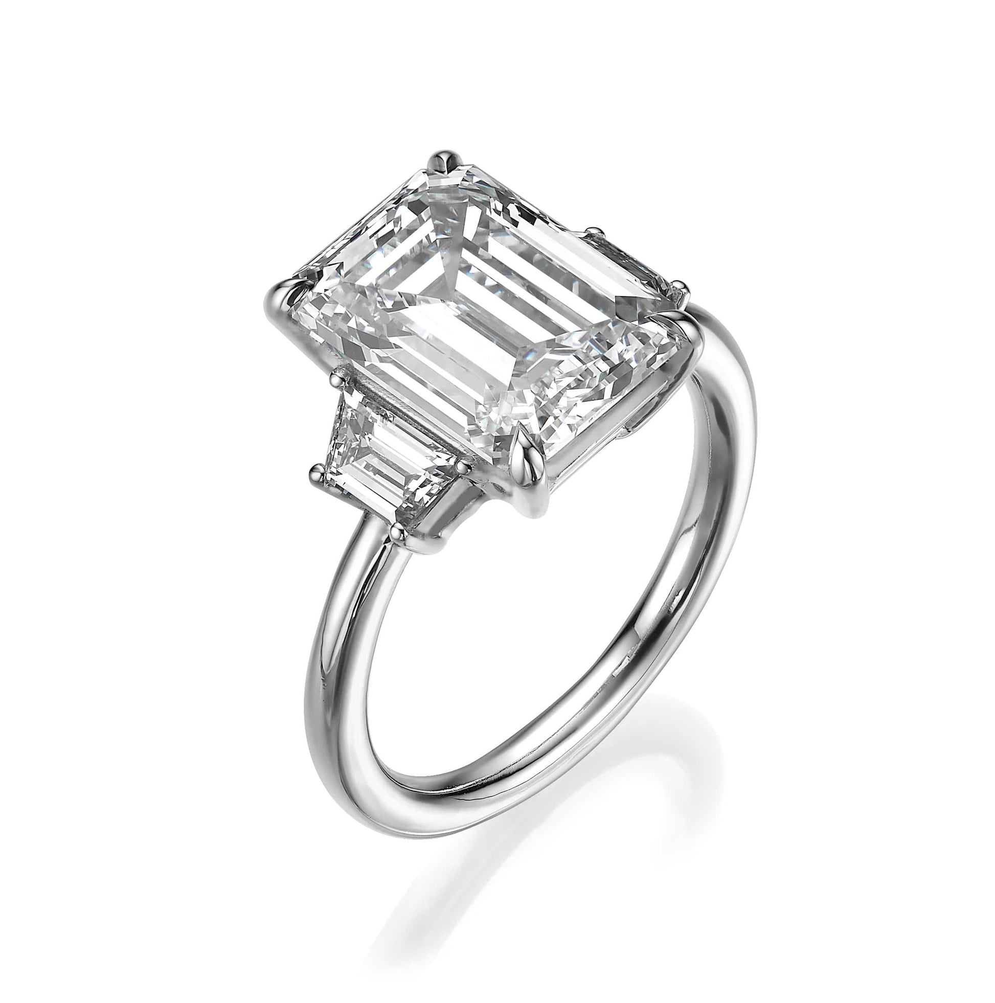 5.61 Carats Lab Grown Emerald Cut with Trapezoid Side Stones Diamond Engagement Ring
