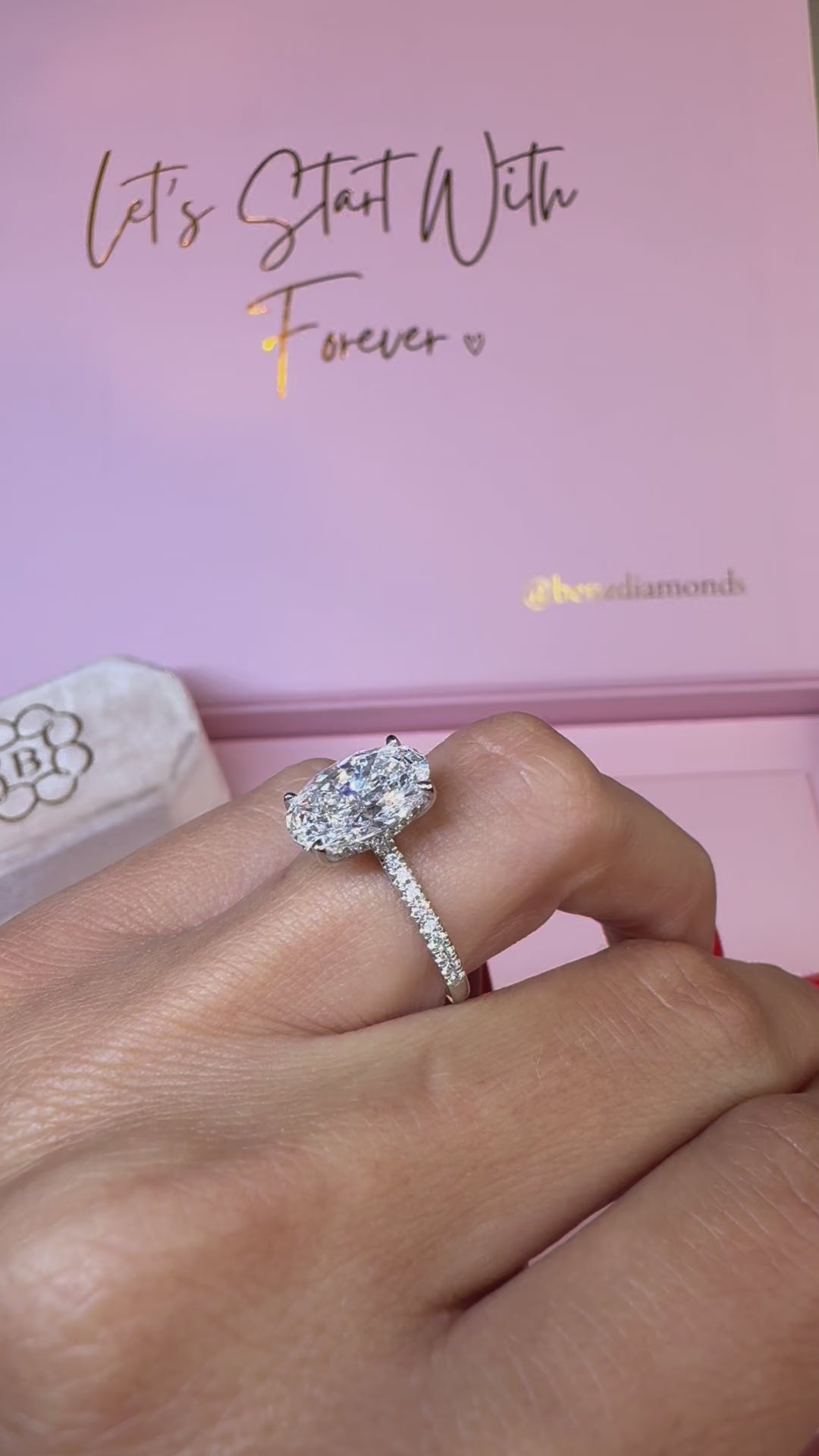 2.50 Carats Lab Grown Oval Cut Micropaved Side Stones Hidden Halo Diamond Engagement Ring