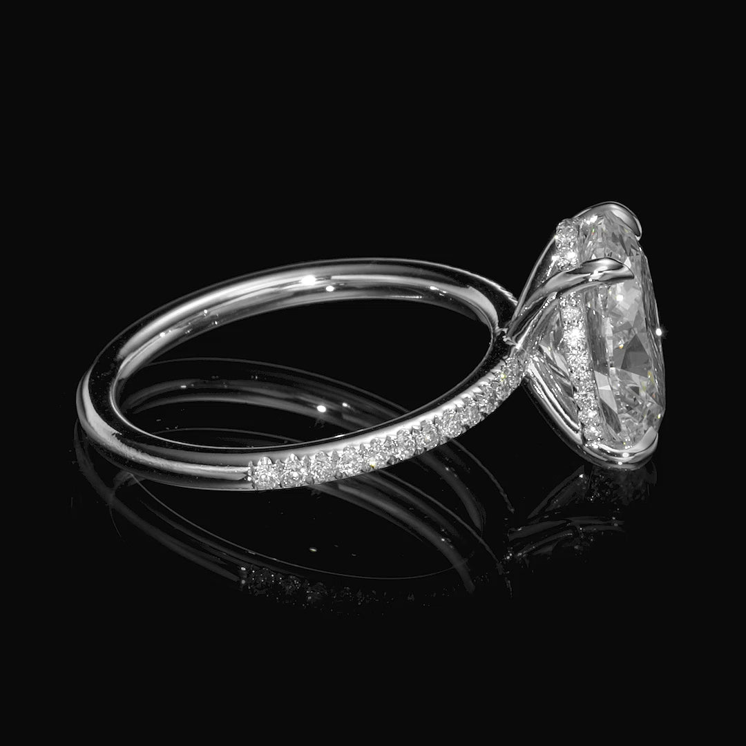 3.50 Carats Lab Grown Oval Cut Micropaved Side Stones Hidden Halo Diamond Engagement Ring