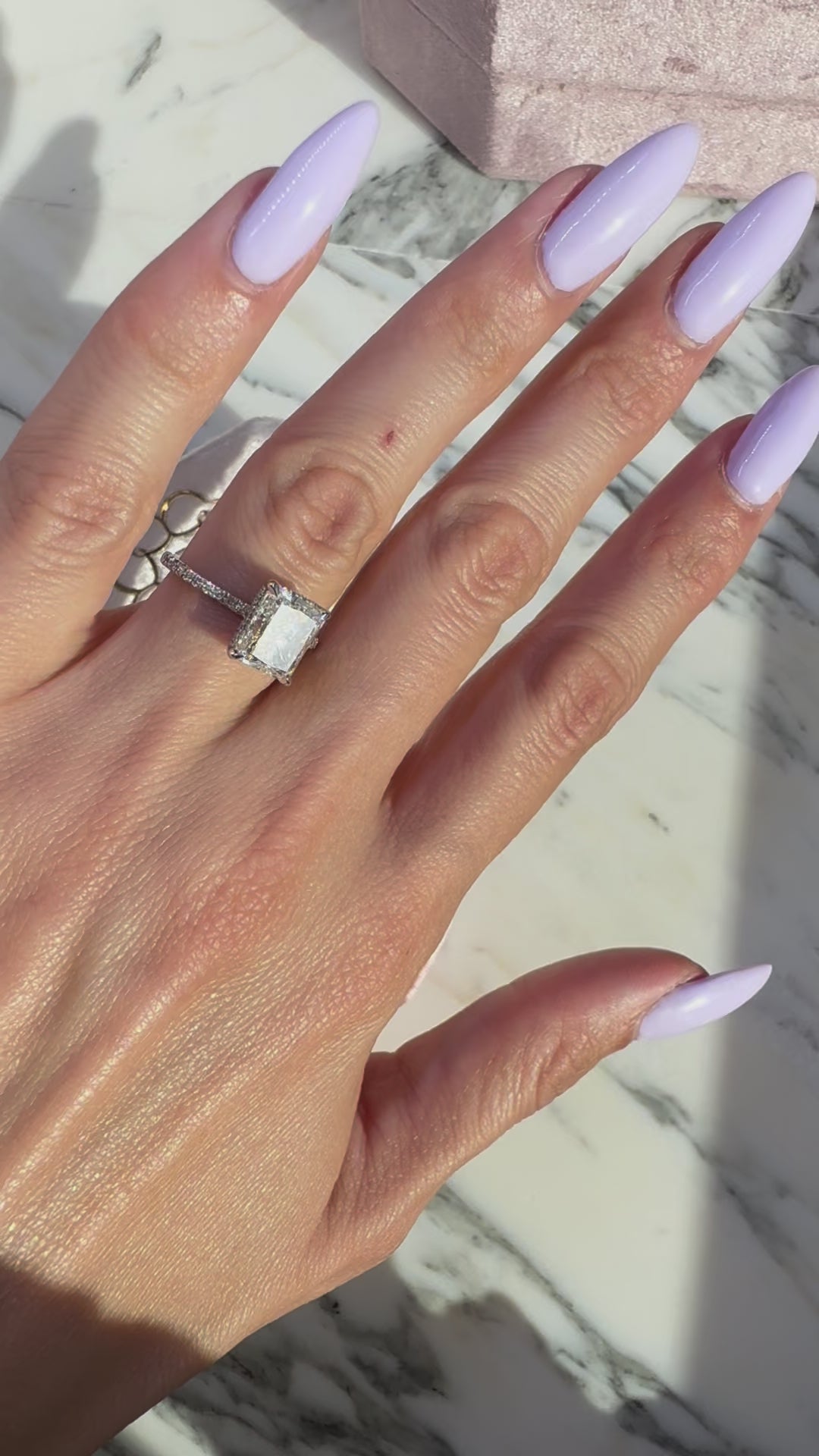 2 Carats Lab Grown Radiant Cut Micropaved Side Stones Hidden Halo Diamond Engagement Ring