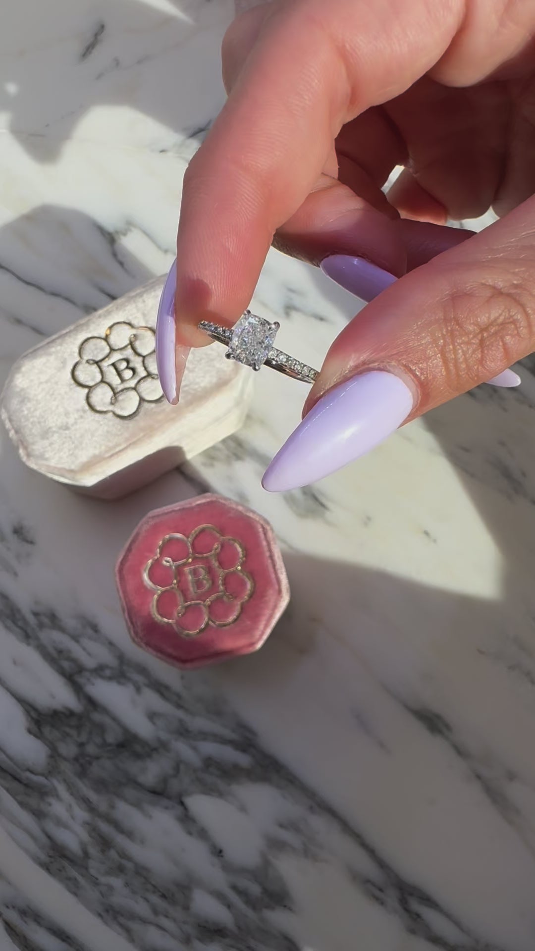 1.45 Carats Elongated Cushion Cut Micropaved Side Stones Hidden Halo Diamond Engagement Ring