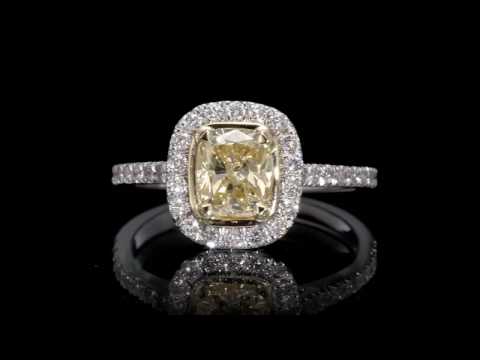 1.42 ct Fancy Yellow Cushion Cut Natural Diamond Engagement Ring