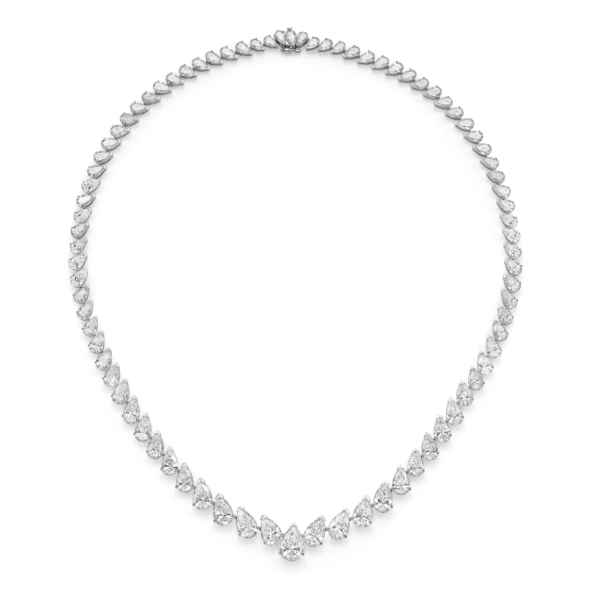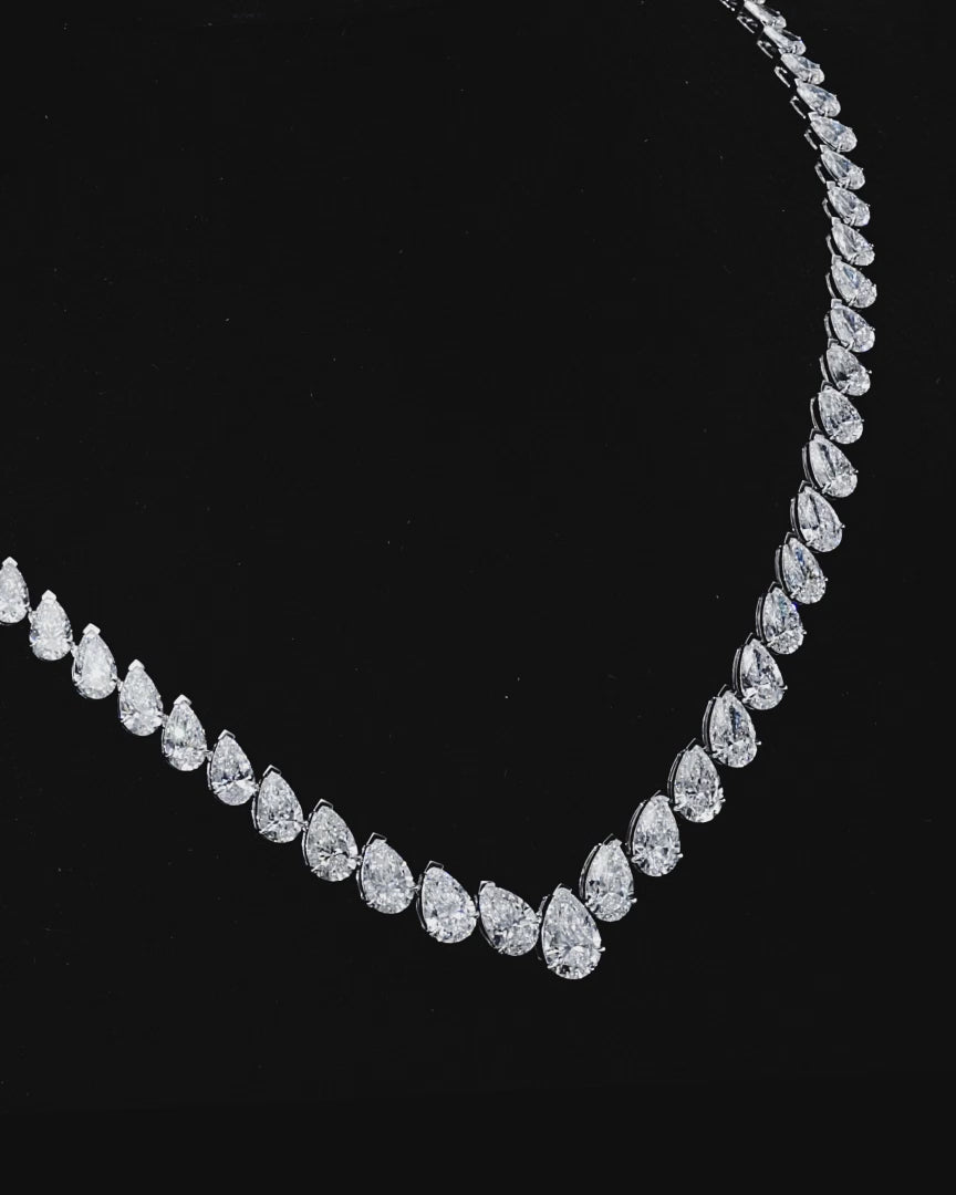 33.87 Carat Pear Shaped Lab Grown Diamond Tennis Necklace in 14k White Gold