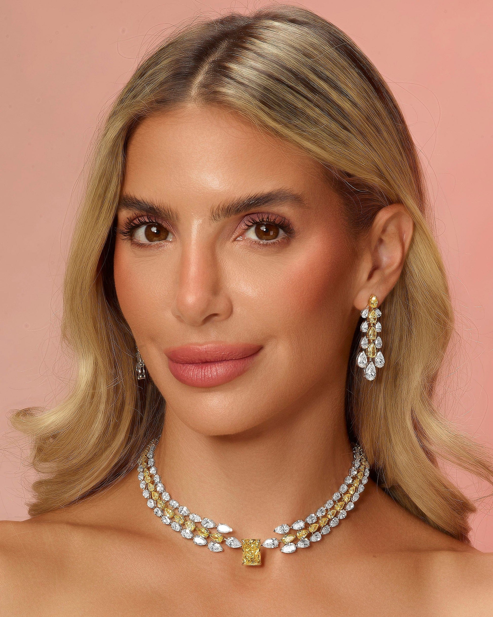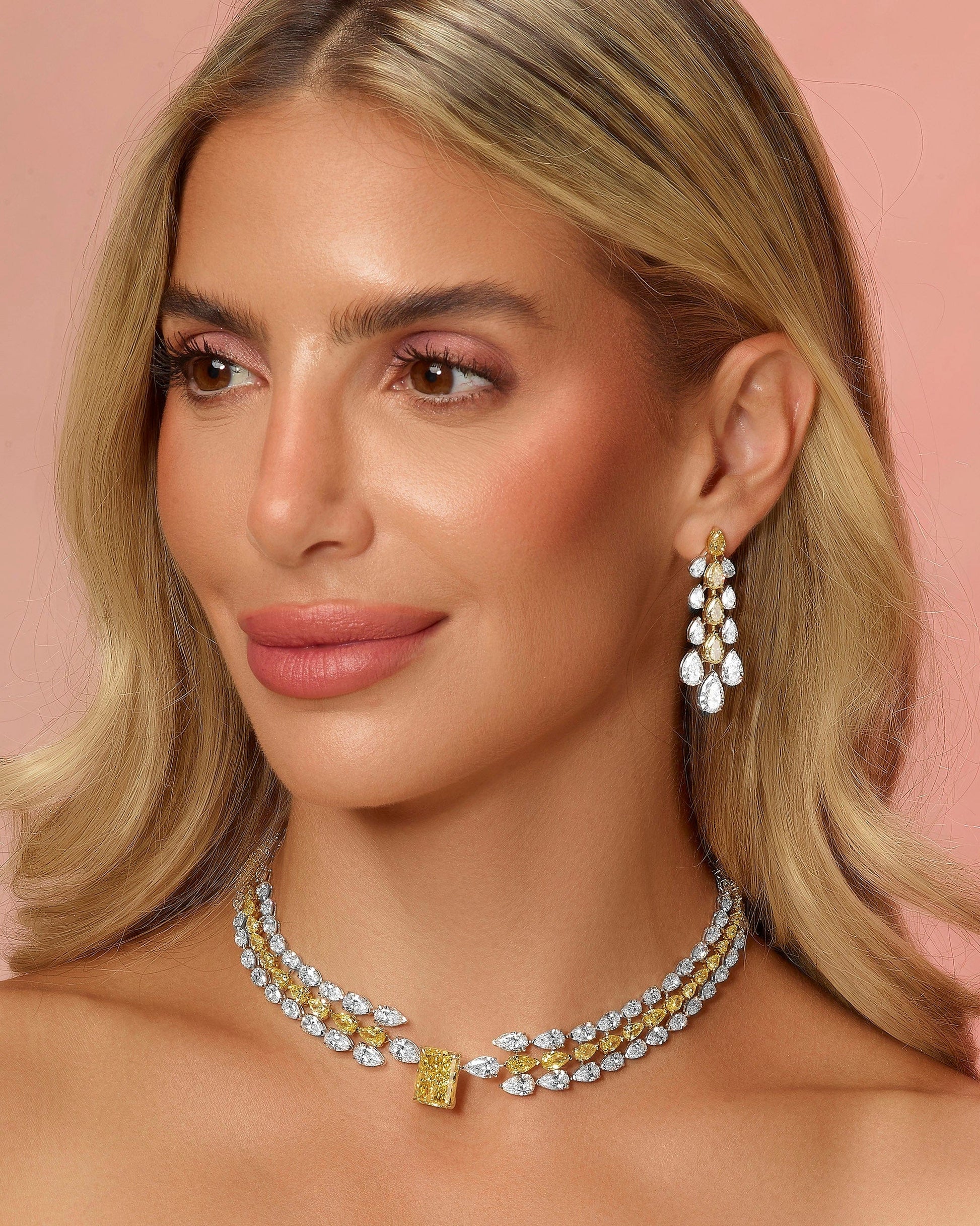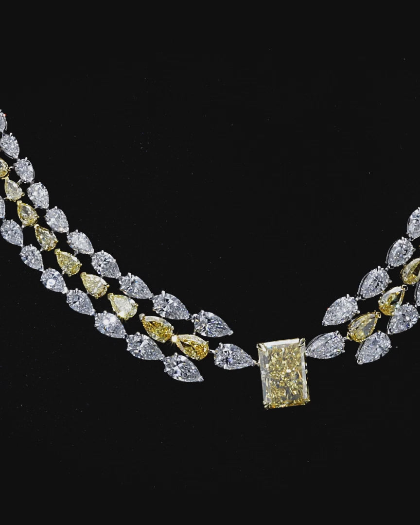 58.45 ct Fancy Vivid Yellow Radiant & Pear-Shaped Diamond Necklace in 14k Yellow & White Gold