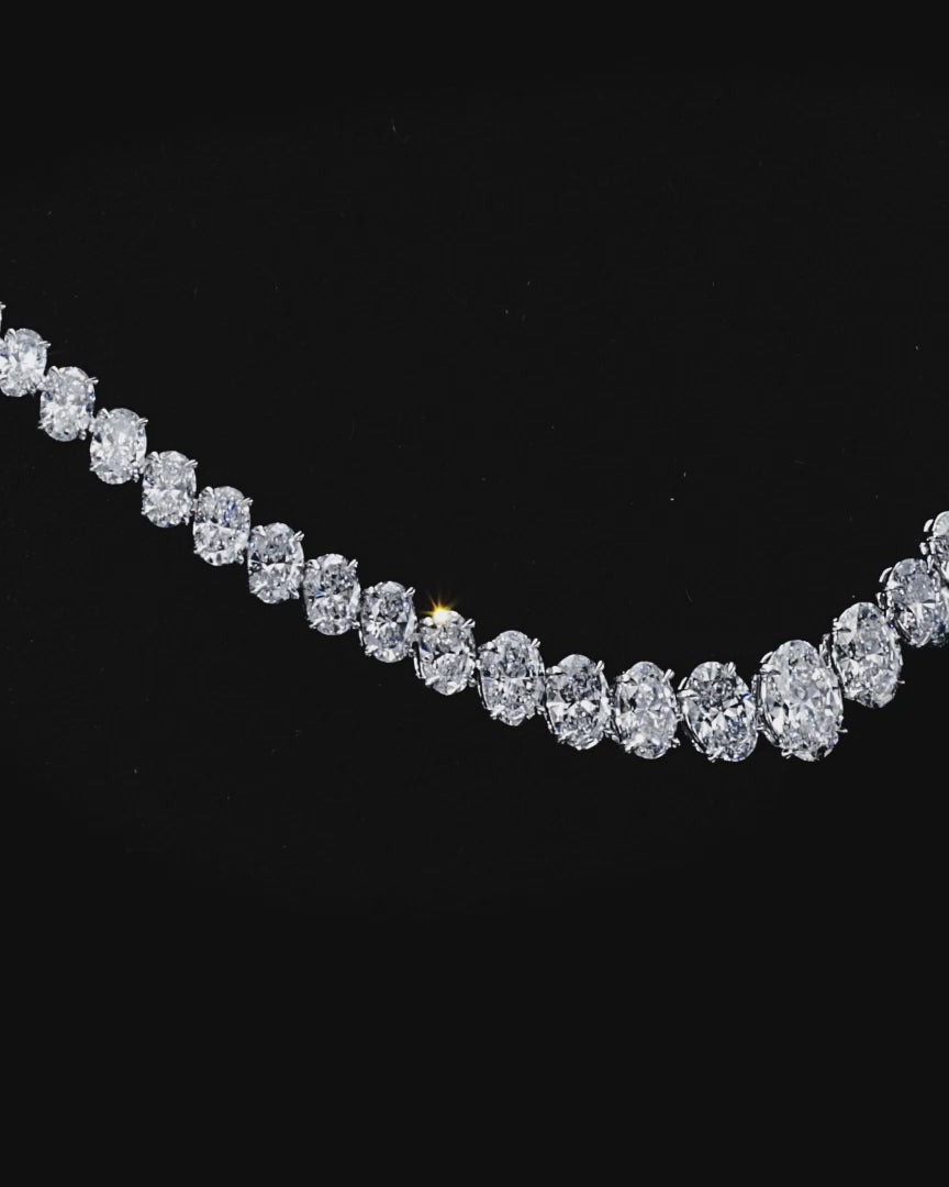 39.05 Carat Oval Cut Lab Grown Diamond Tennis Necklace in 14k White Gold