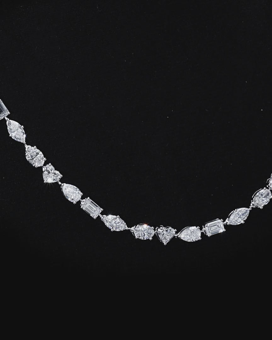 28.90 Carat Multi Shape Lab Grown Diamond Tennis Necklace in 14k White Gold
