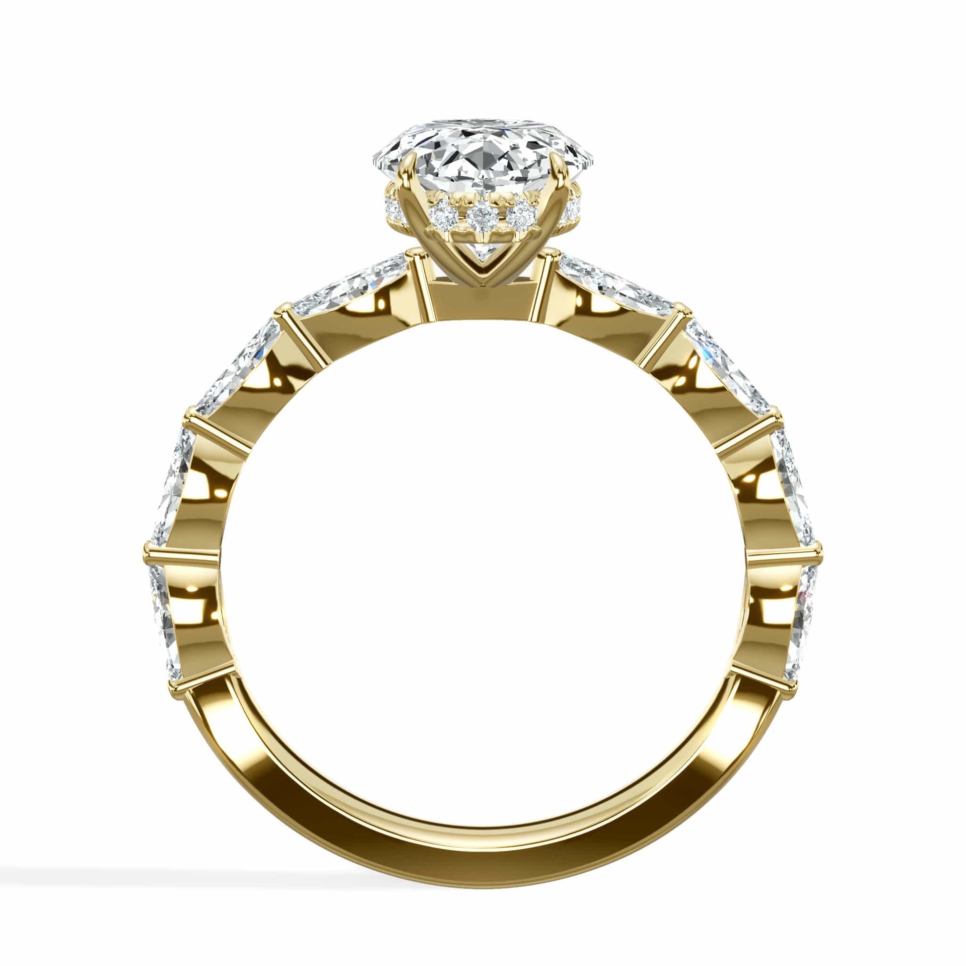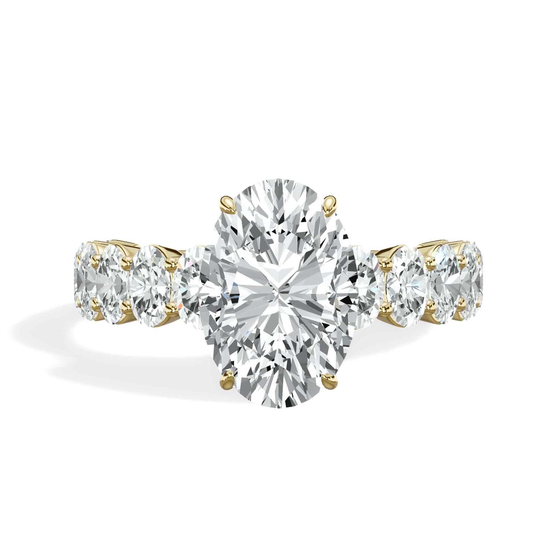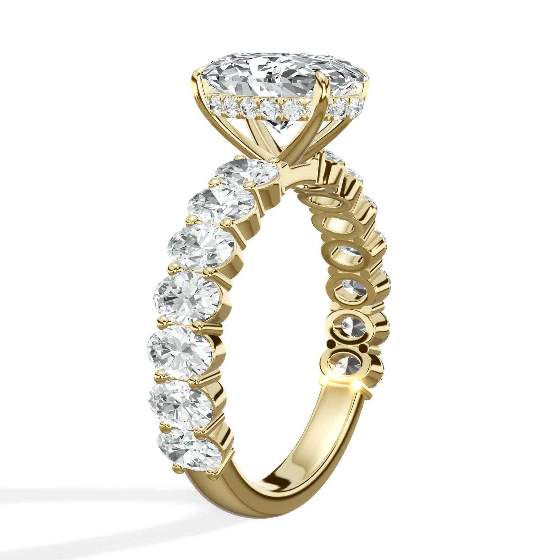 4 Carat Lab Grown Oval Cut with Oval Side Stones Hidden Halo Diamond Engagement Ring In Yellow Gold