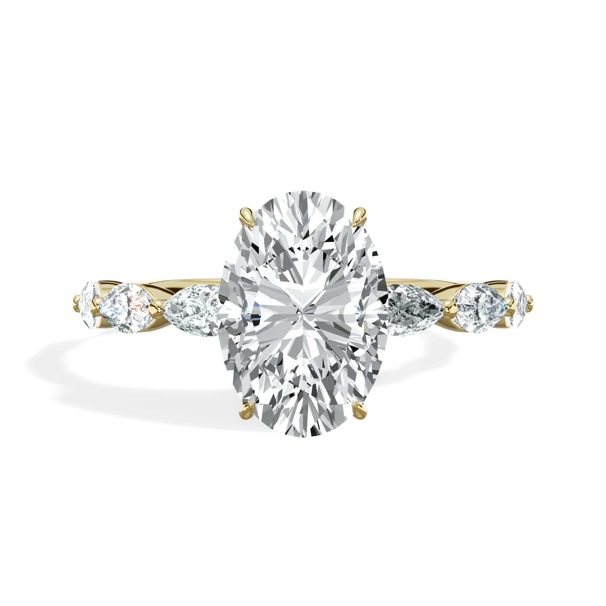 2.40 Carats Lab Grown Oval Cut with Pear Shape Side Stones Diamond Engagement Ring in Yellow Gold