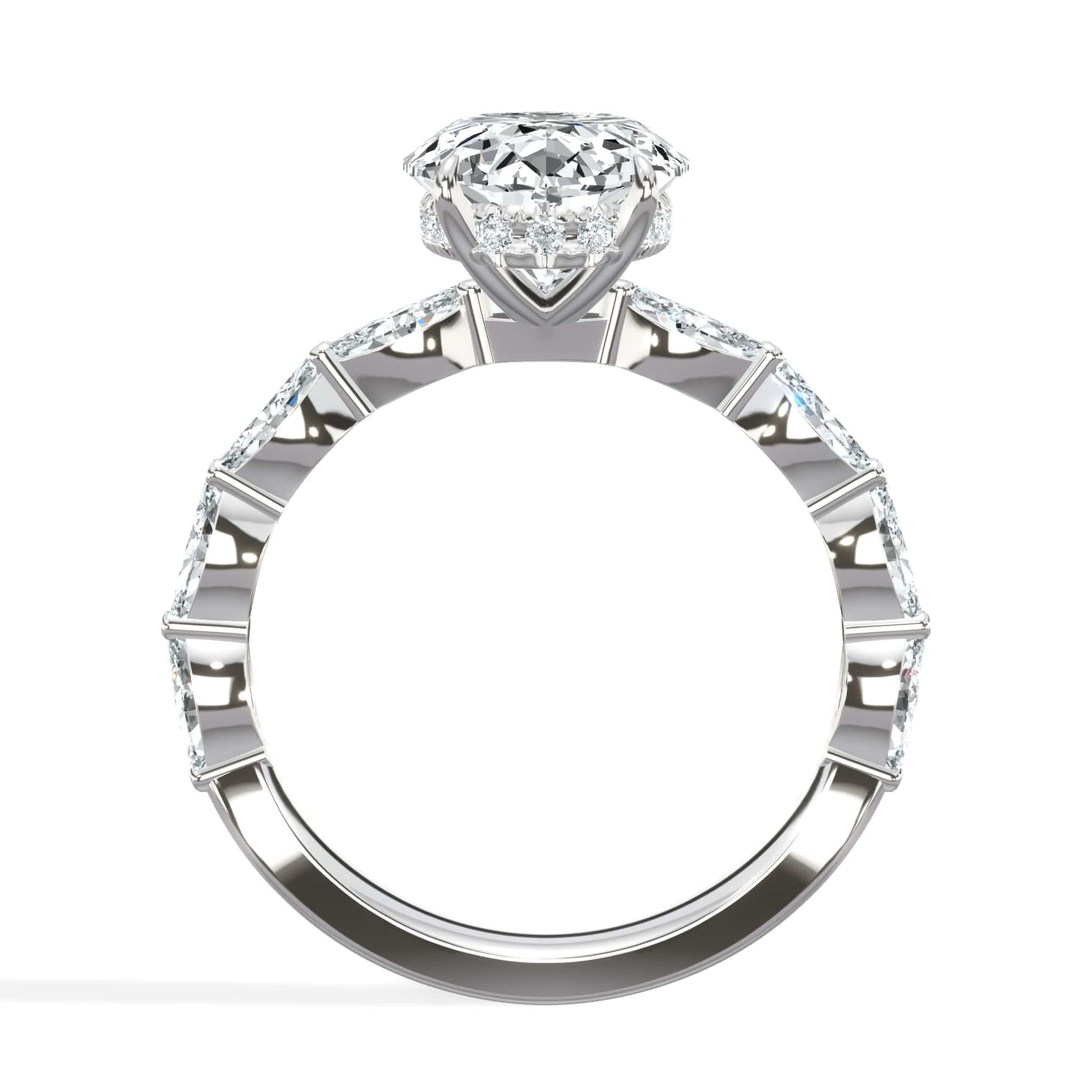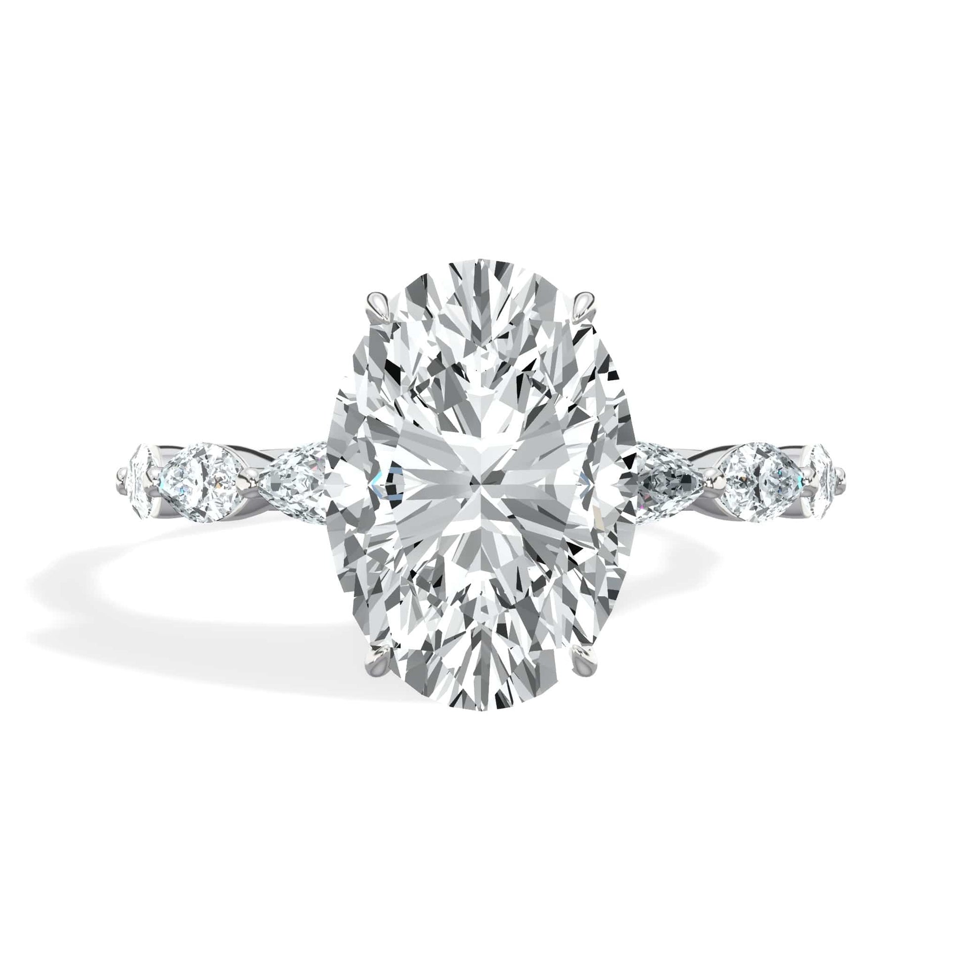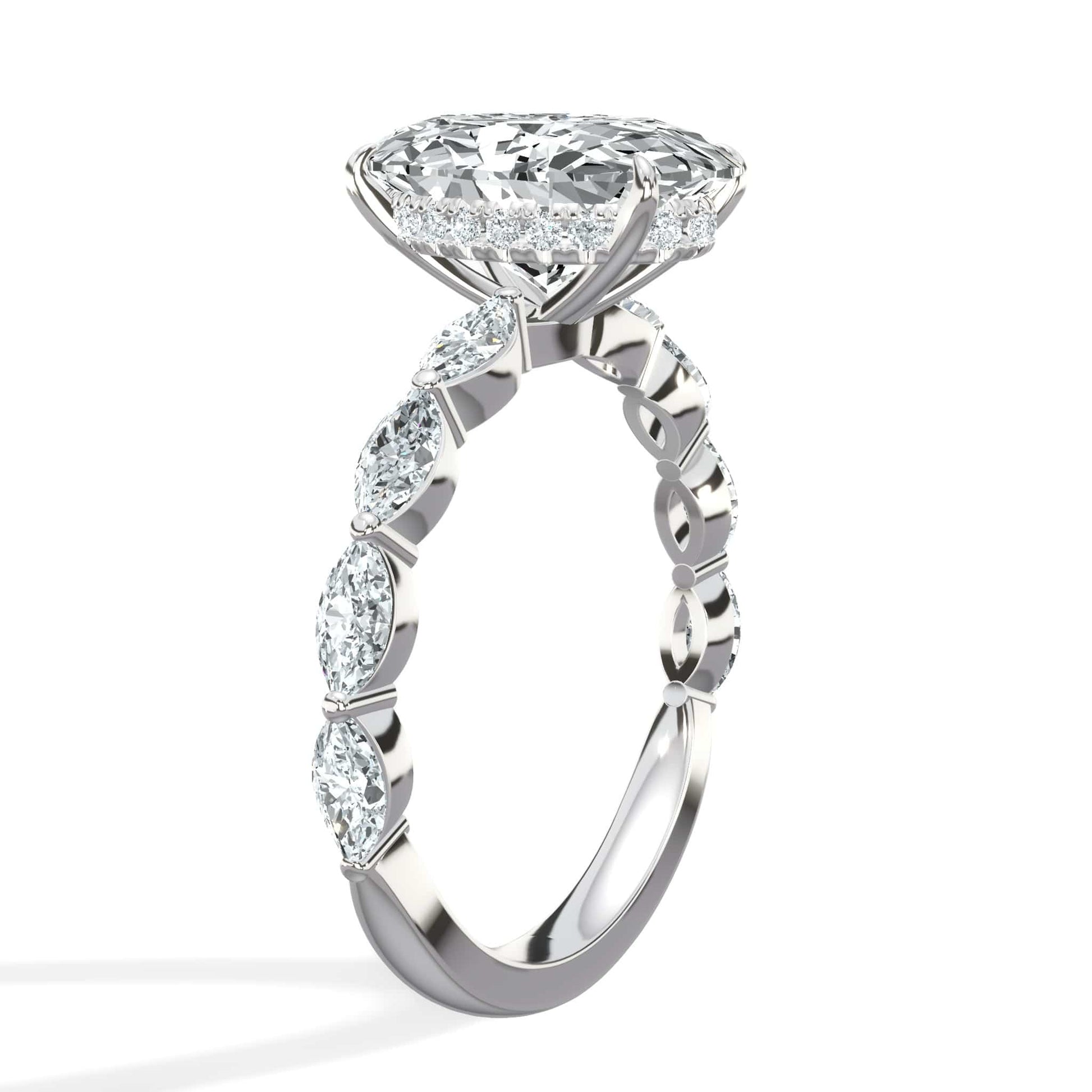 4.00 Carat Lab Grown Oval Shape with Marquise Side Stones Hidden Halo Diamond Engagement Ring