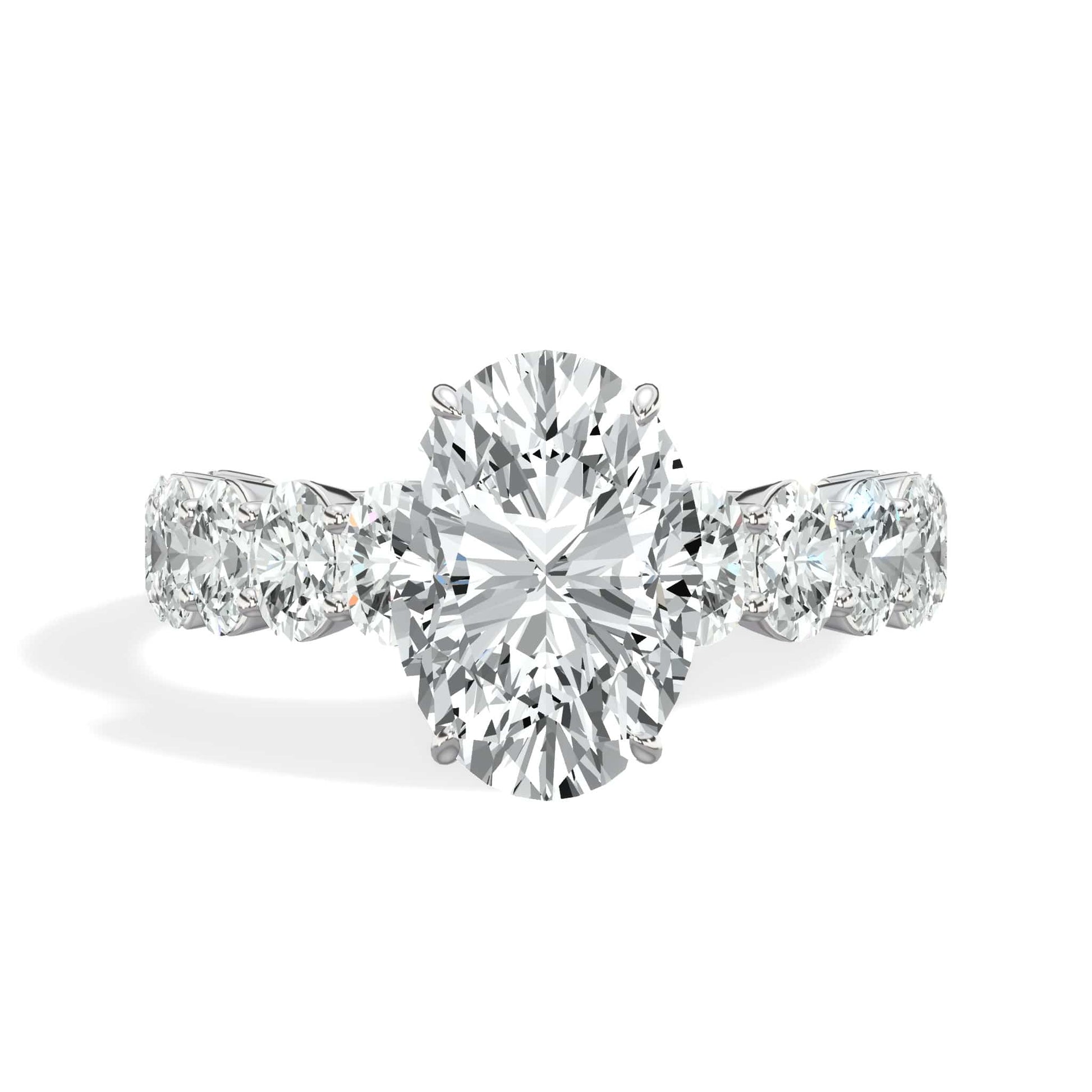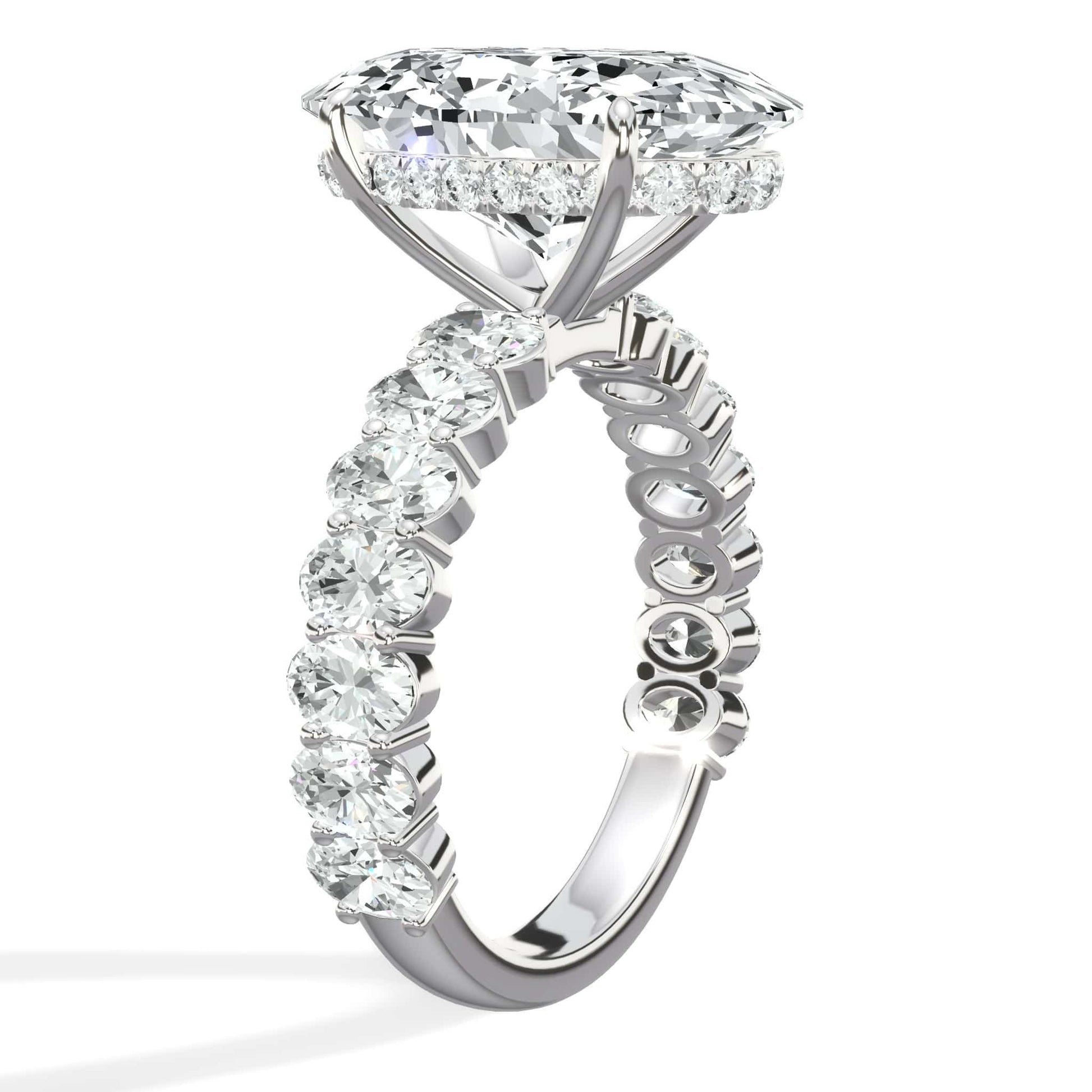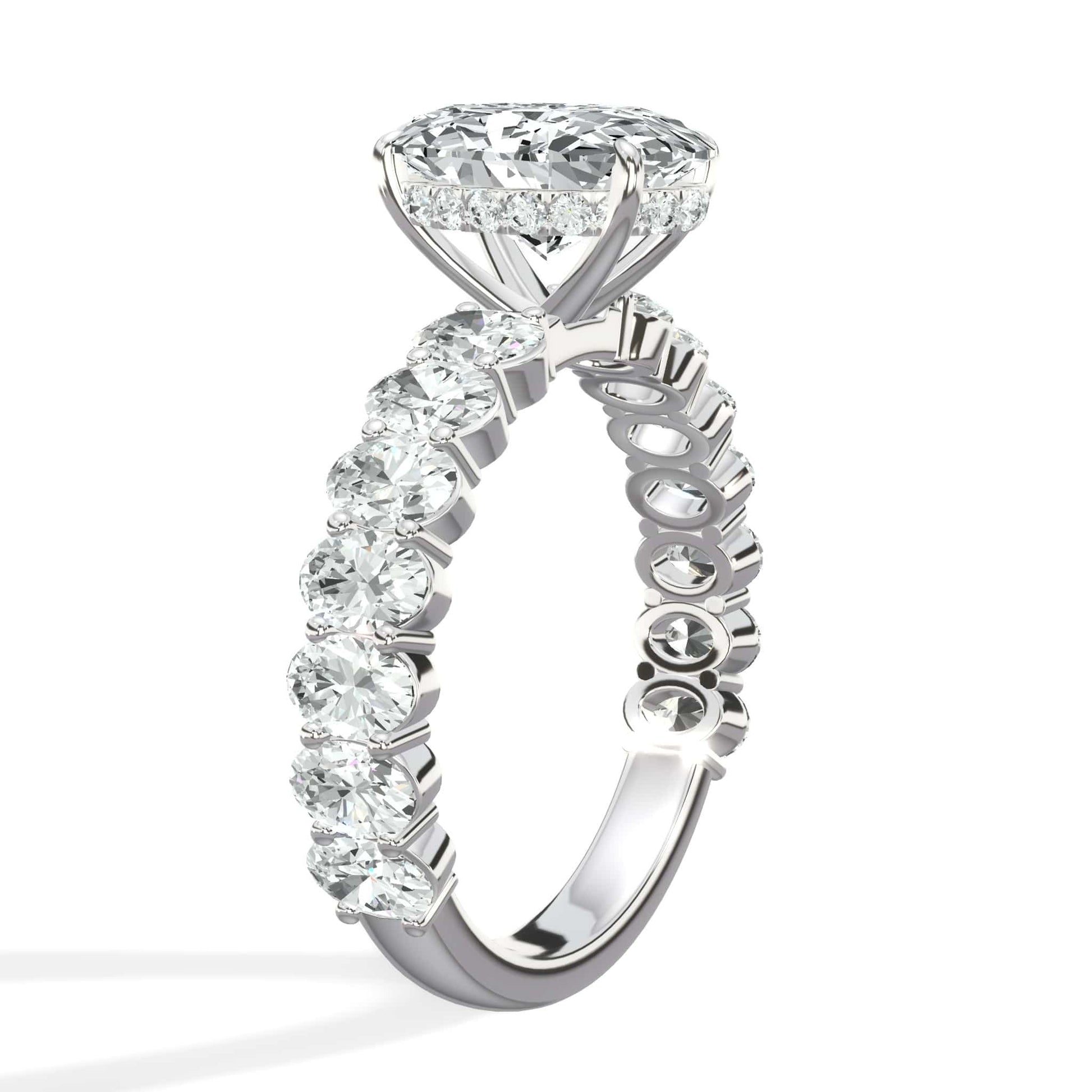 4 Carats Lab Grown Oval Cut with Oval Side Stones Hidden Halo Diamond Engagement Ring
