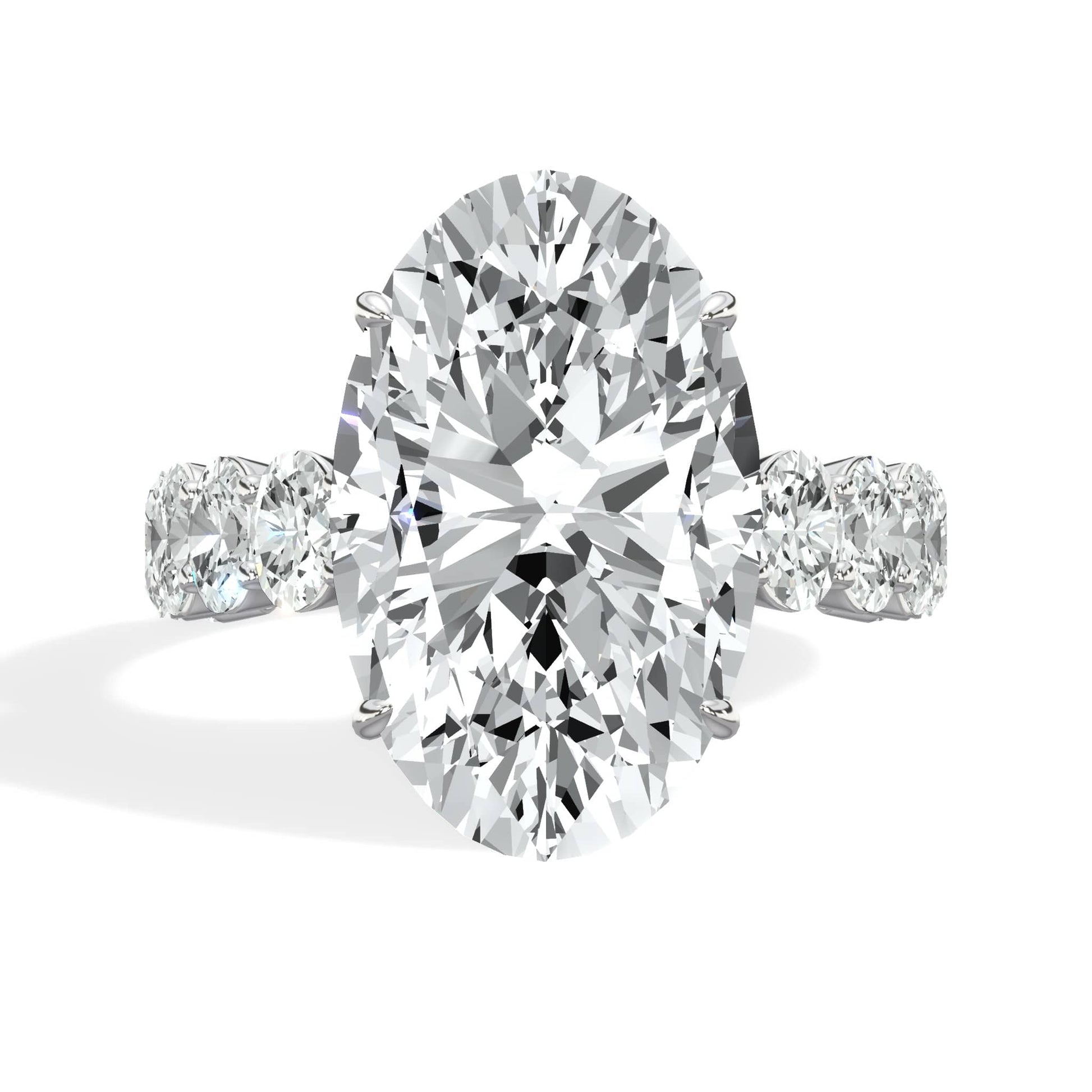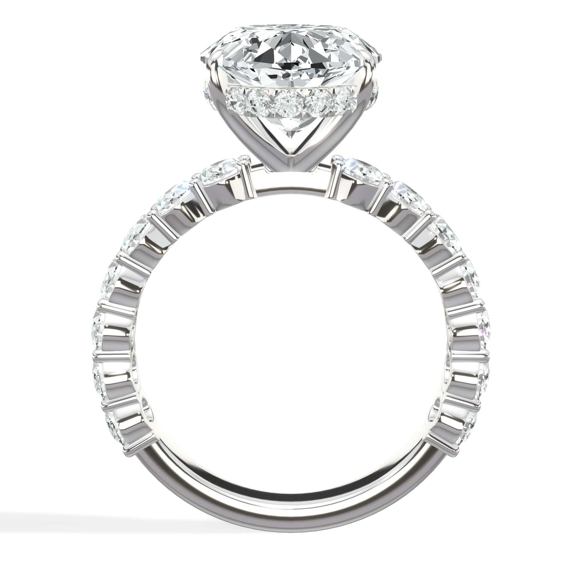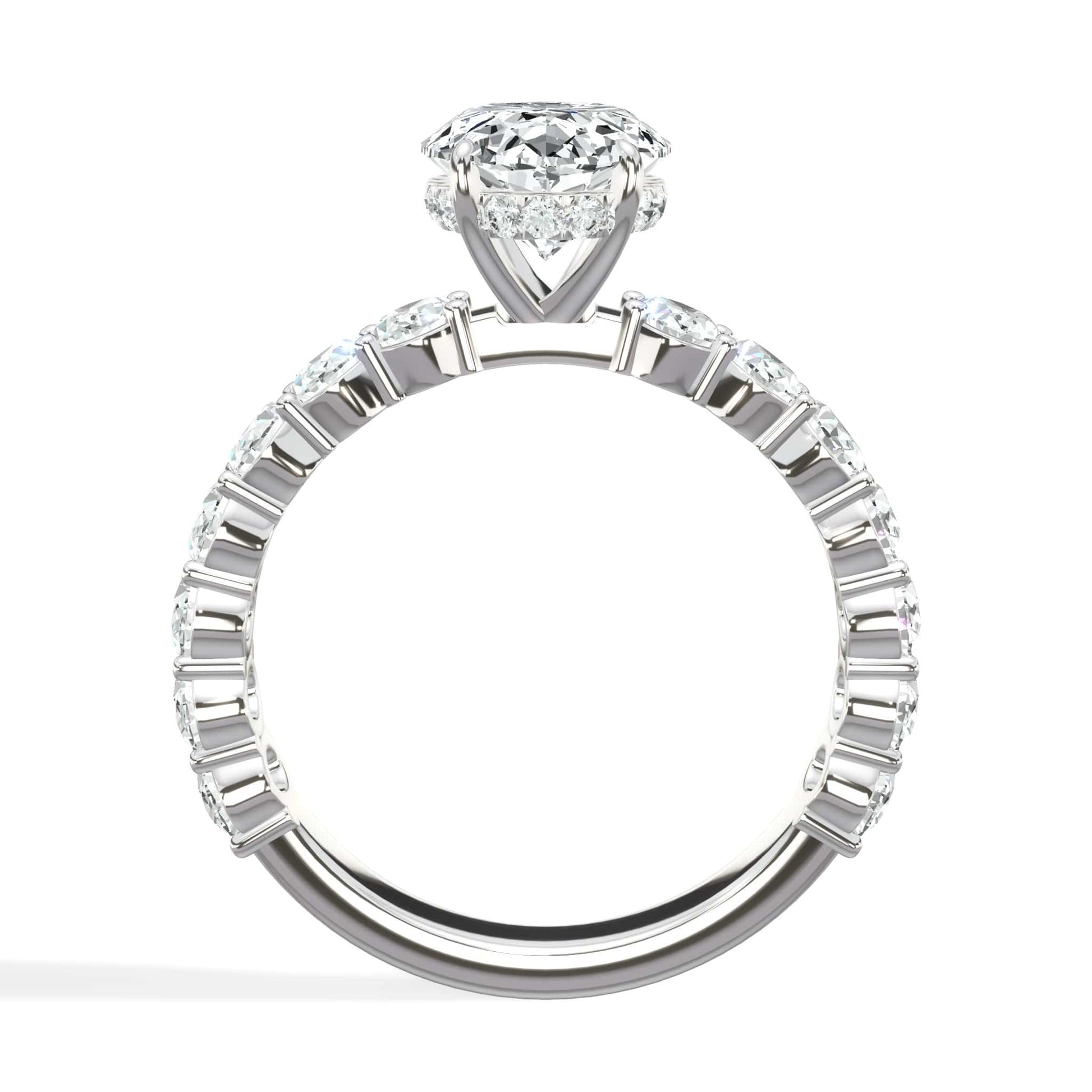 4 Carats Lab Grown Oval Cut with Oval Side Stones Hidden Halo Diamond Engagement Ring