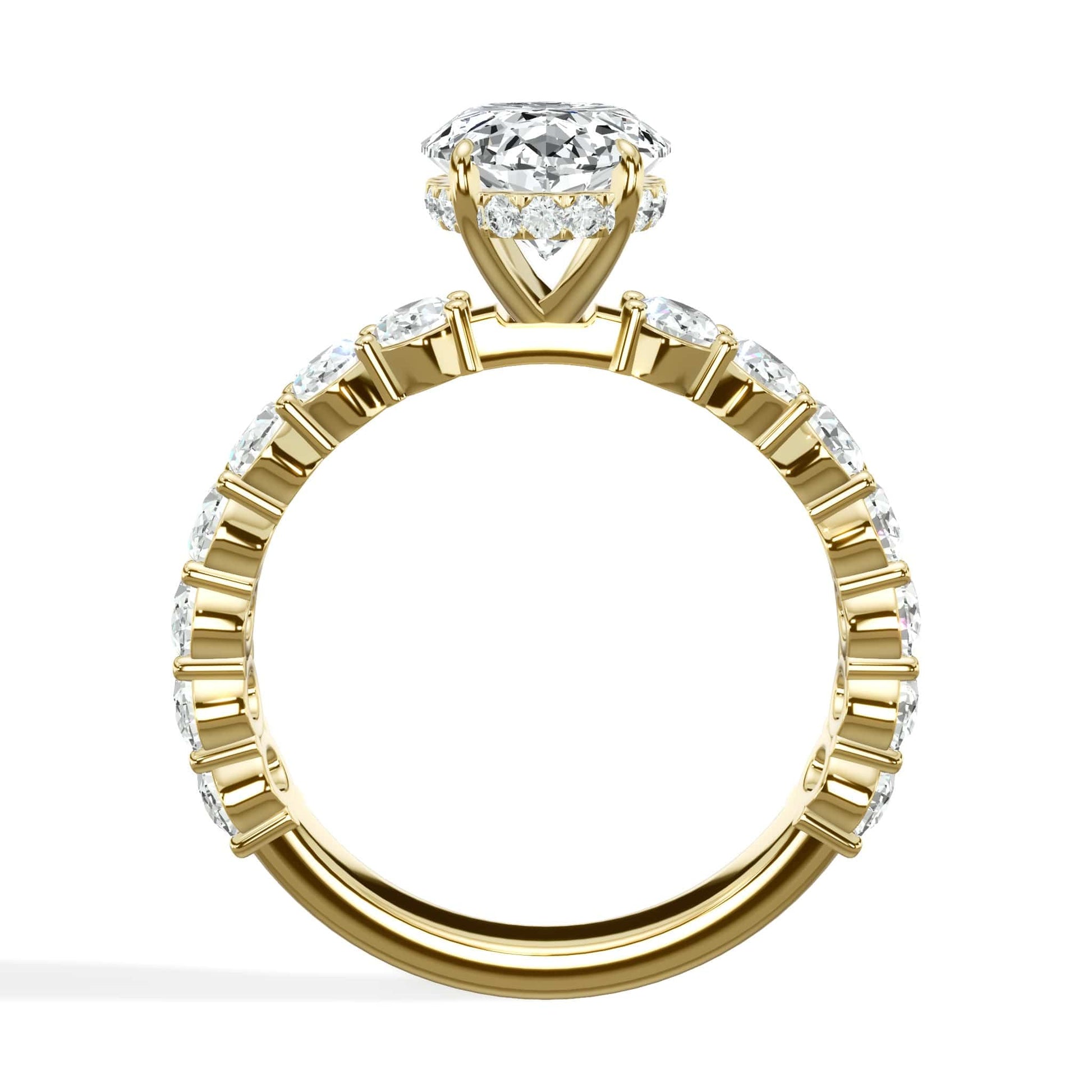 3.18 Carats Lab Grown Oval Cut Lab Grown Diamond Solitaire Hidden Halo Engagement Ring In Yellow Gold