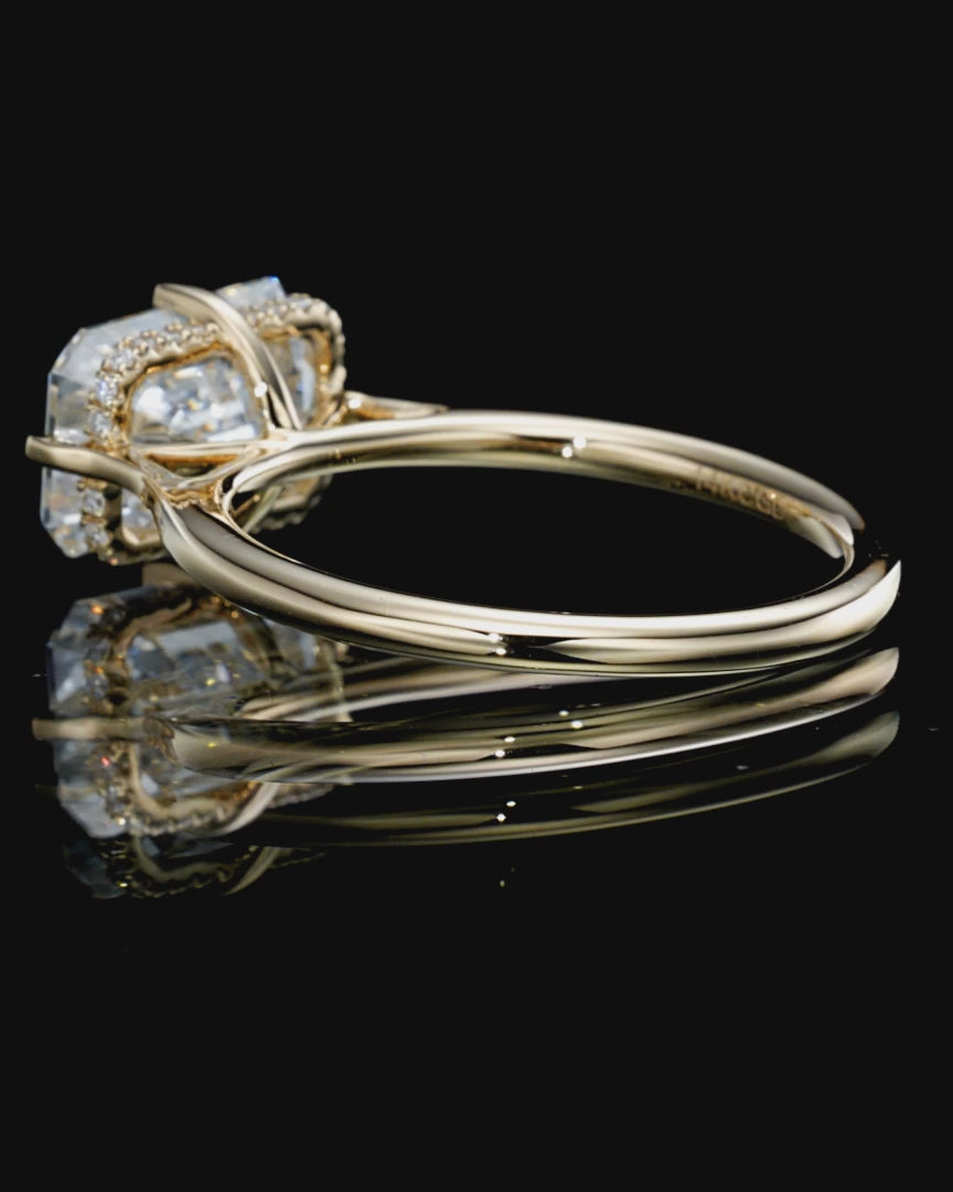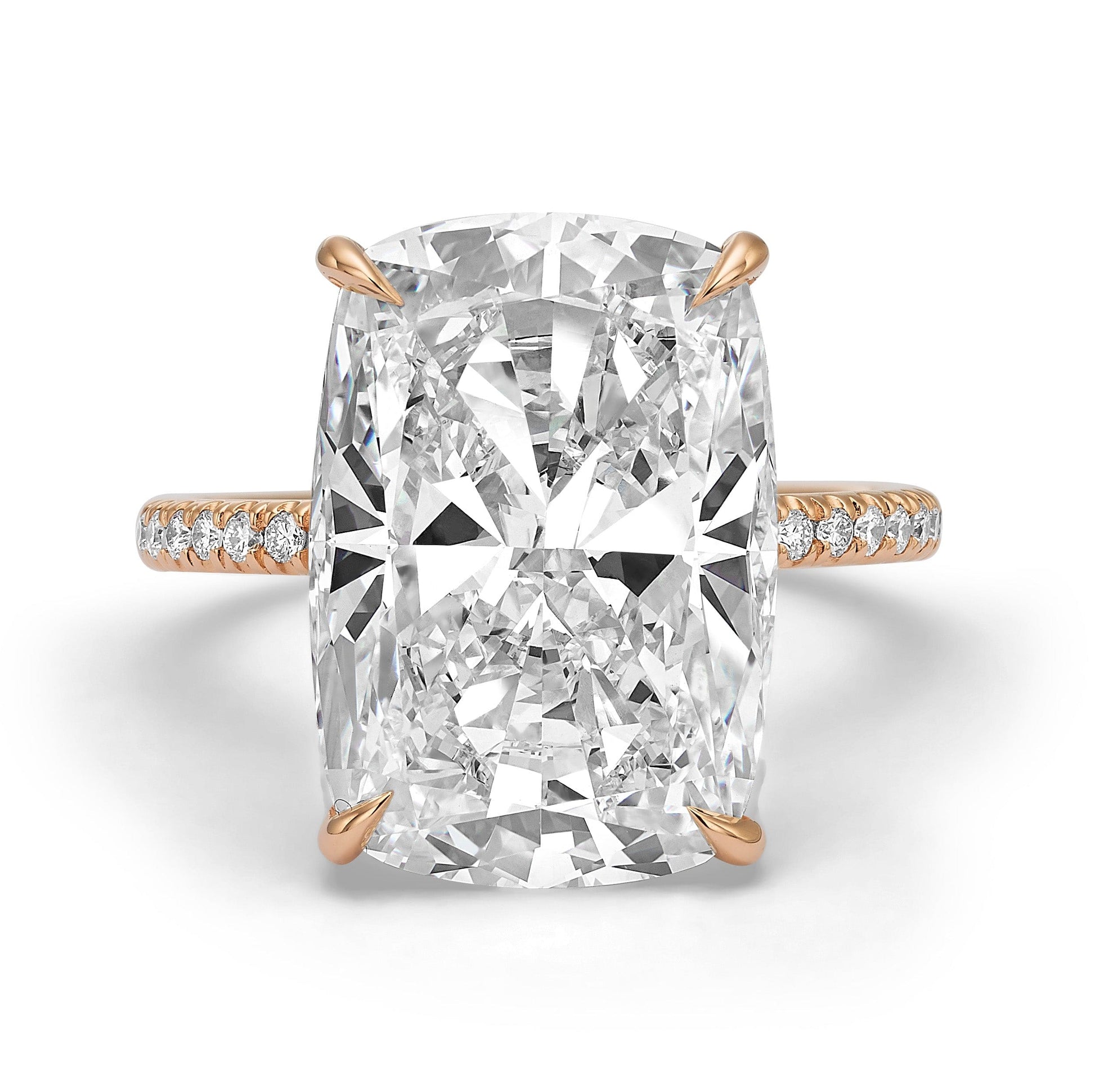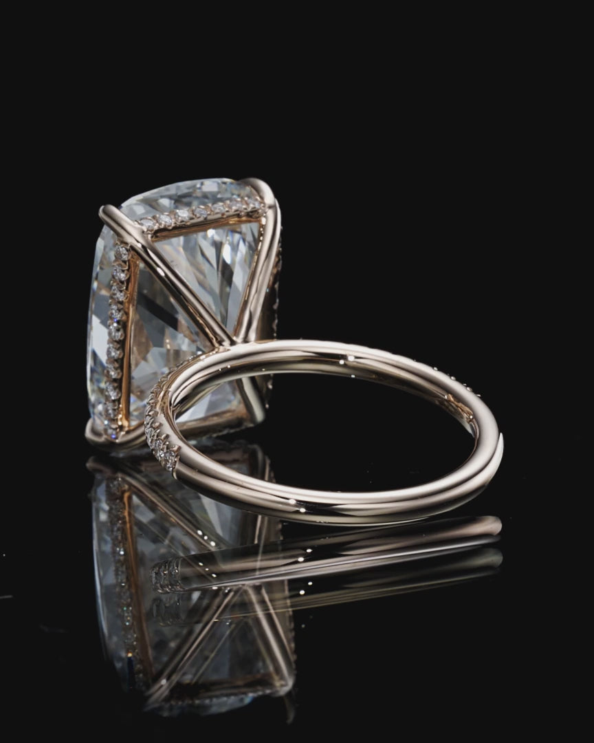11.07 Carats Lab Grown Elongated Cushion Cut Micropaved Side Stones Hidden Halo Diamond Engagement Ring