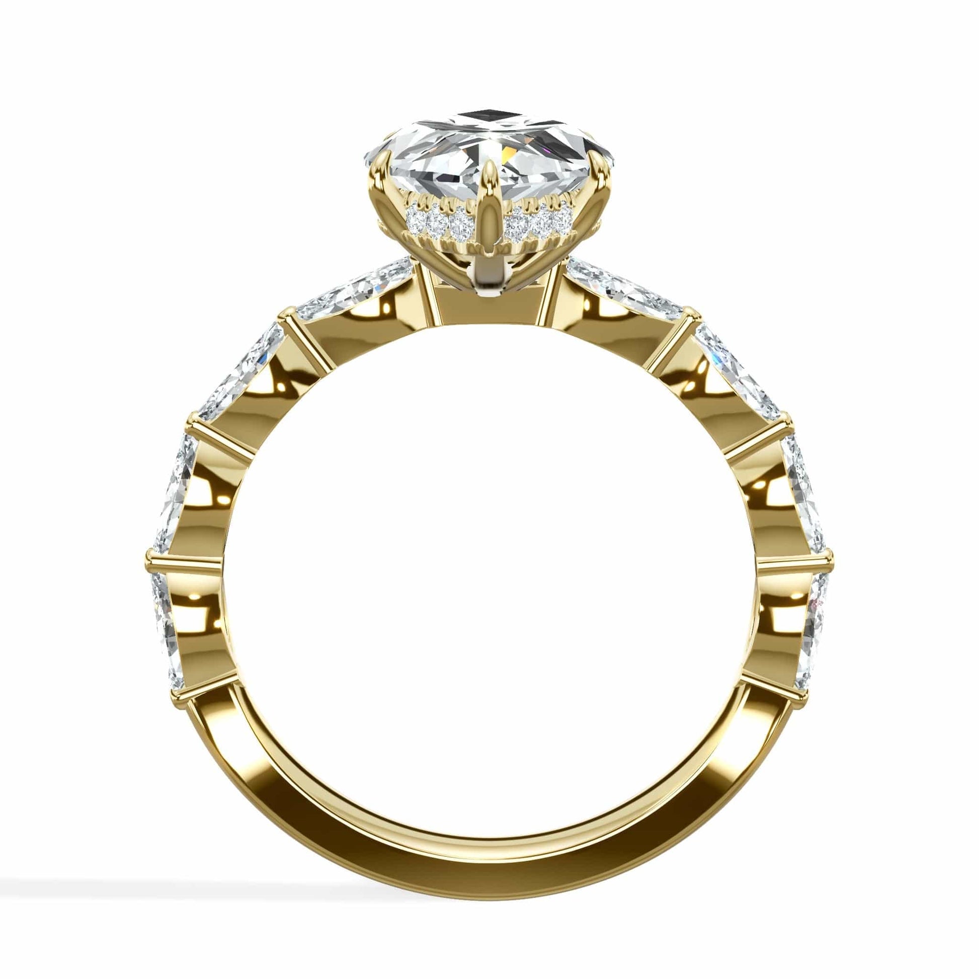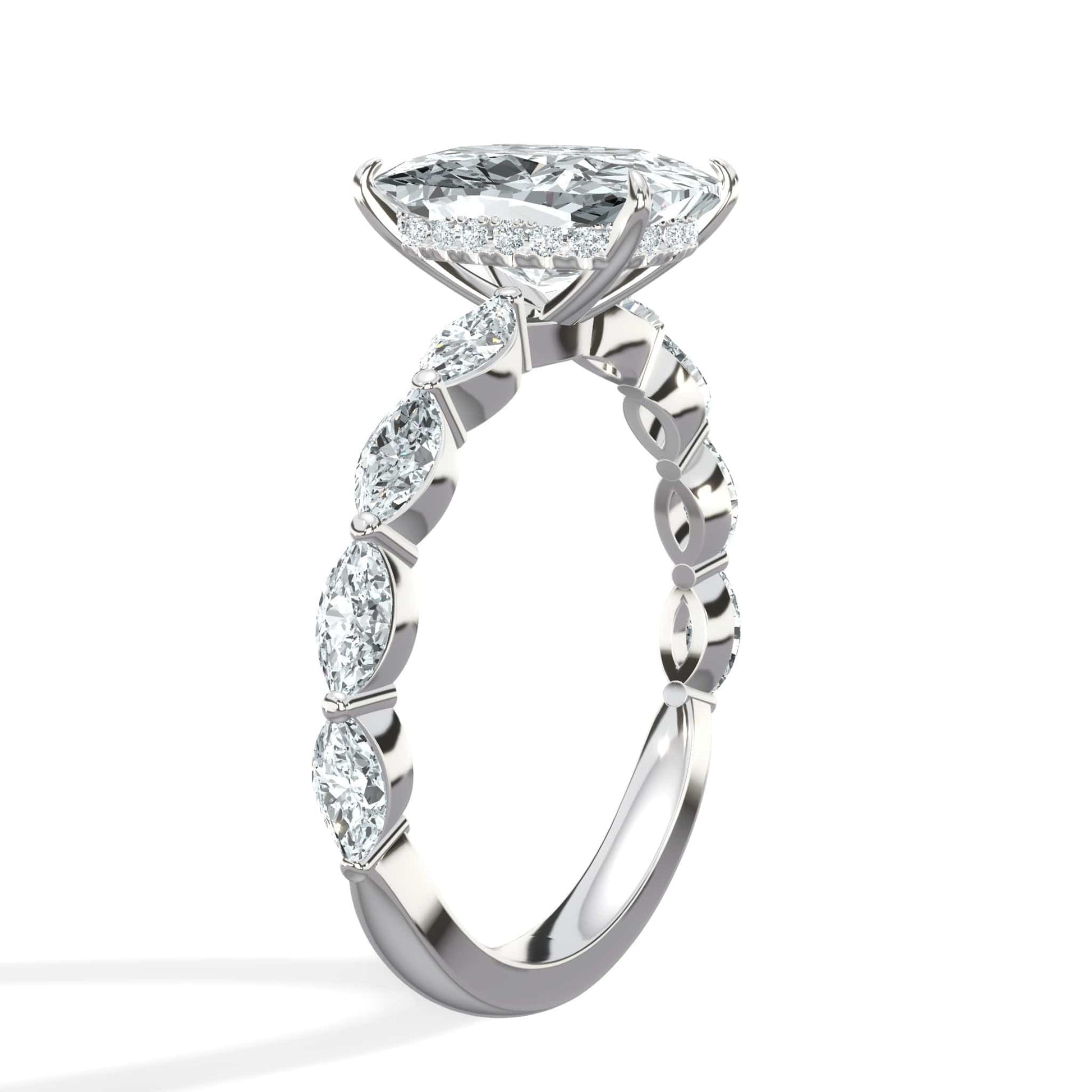 3 Carats Lab Grown Pear Shape Micropaved Side Stones Hidden Halo Diamond Engagement Ring