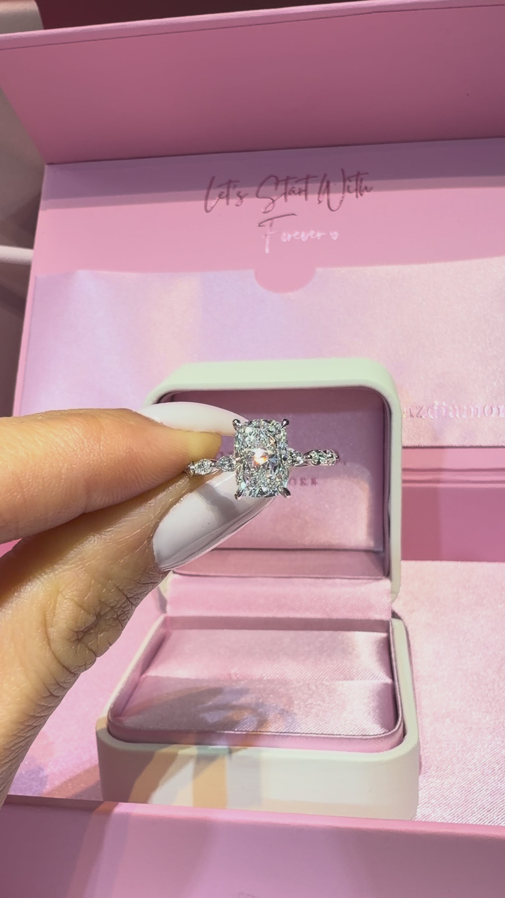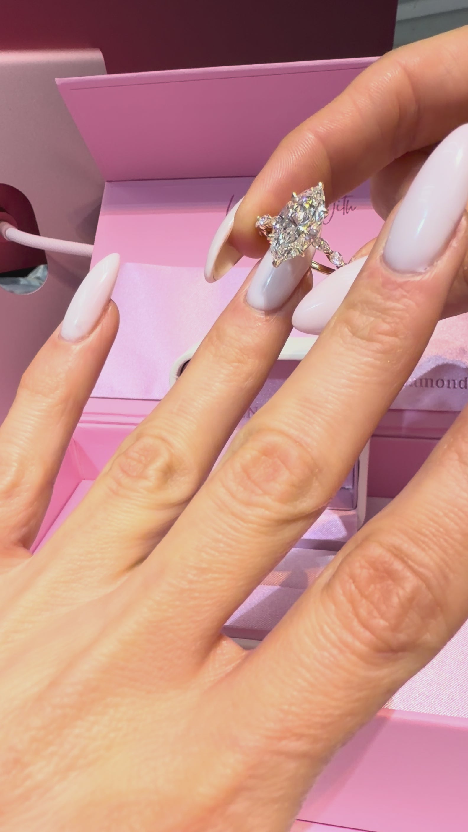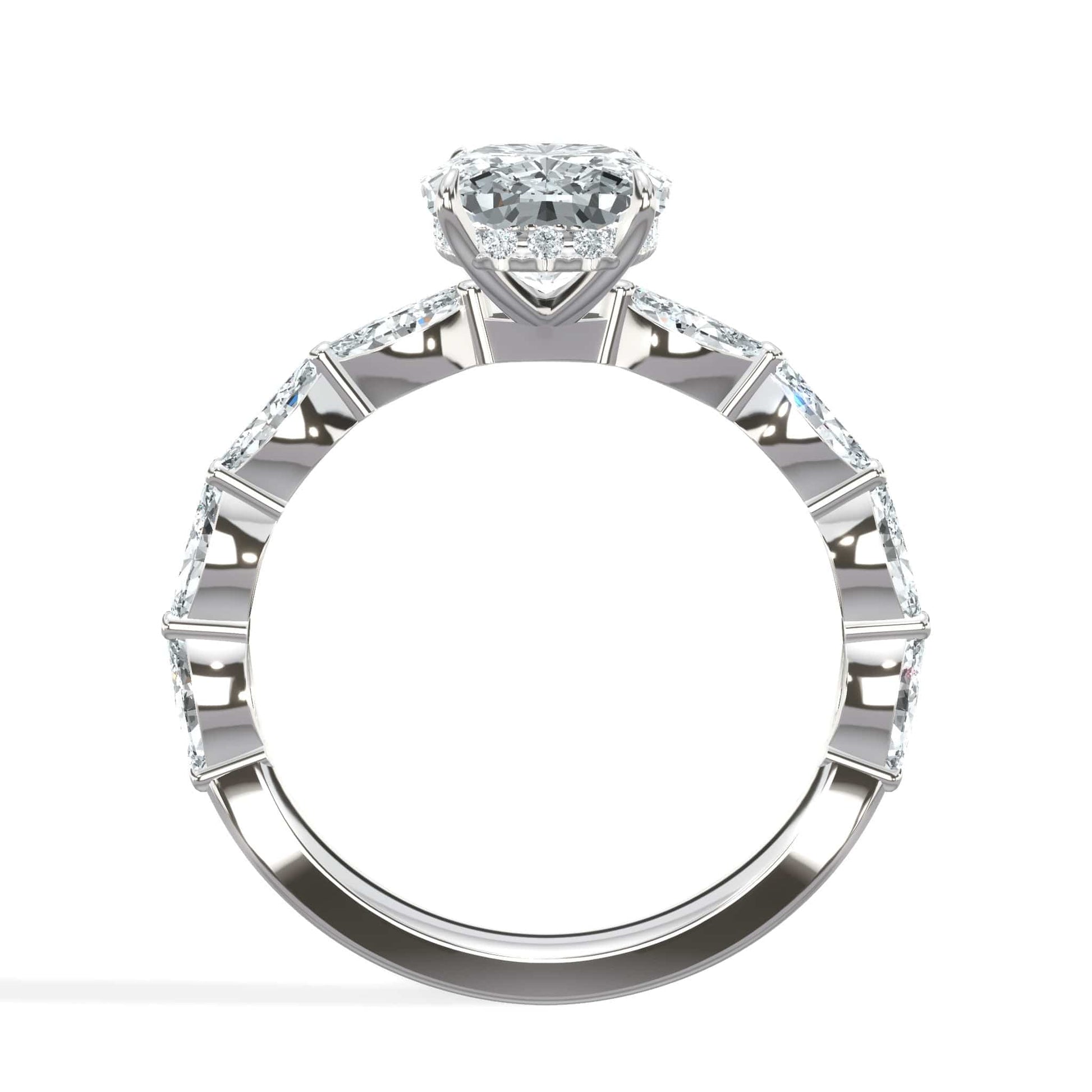 3.01 Carats Lab Grown Elongated Cushion Cut with Marquise Side Stones Hidden Halo Diamond Engagement Ring