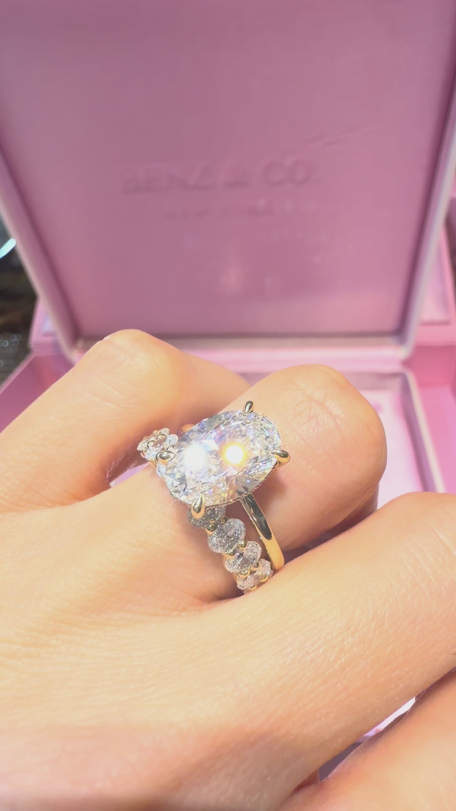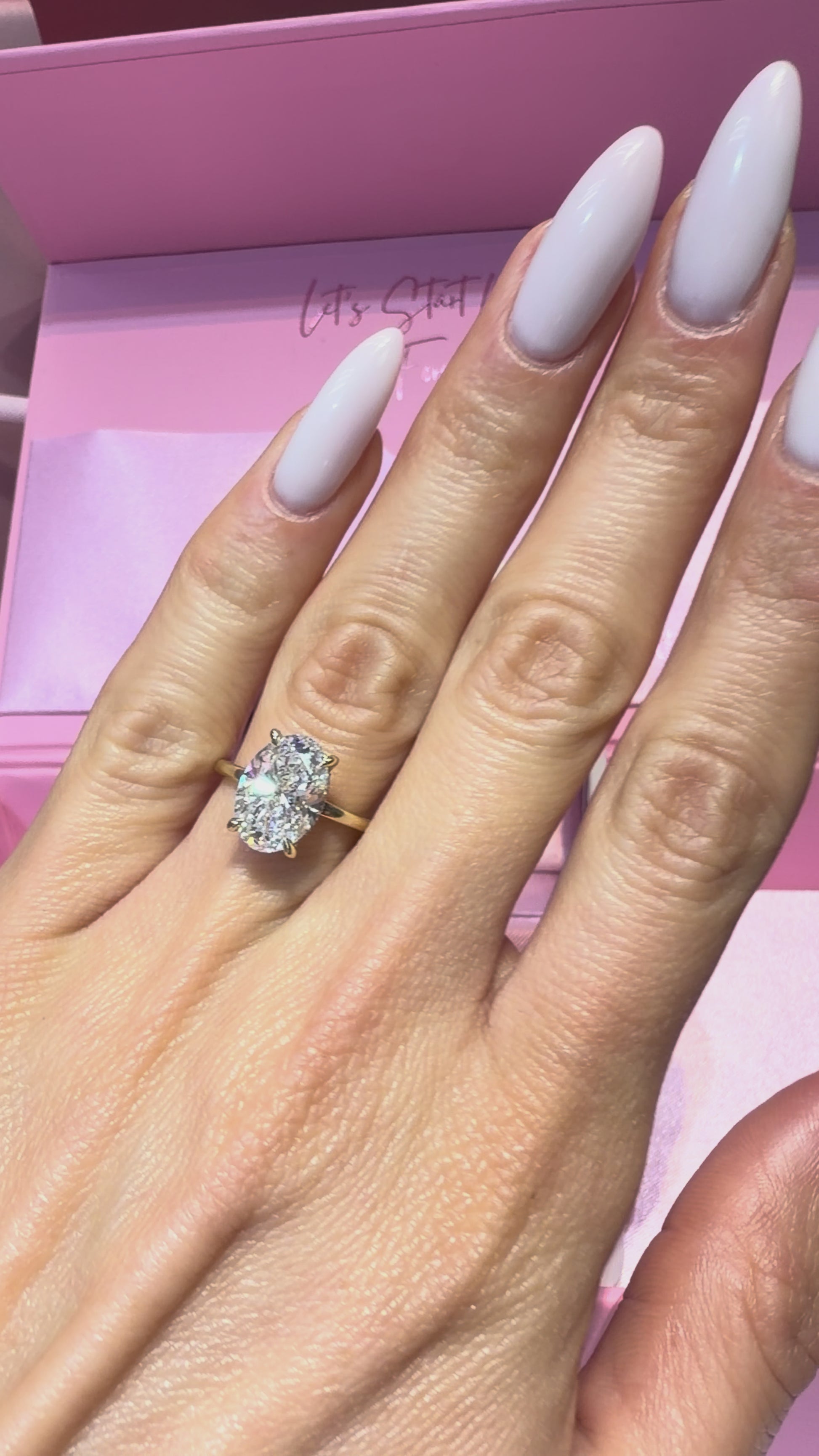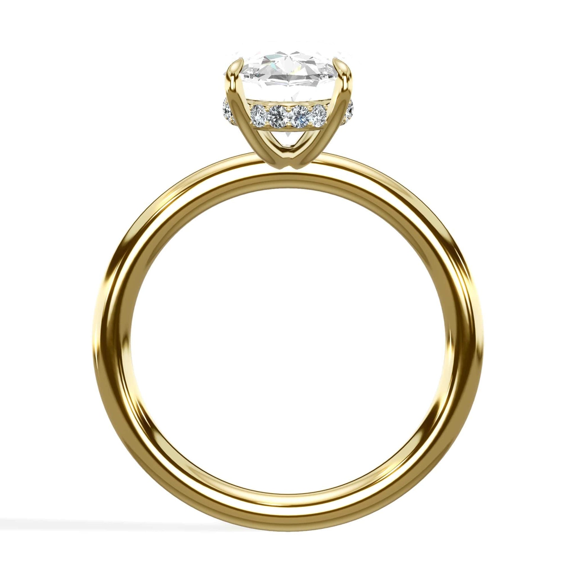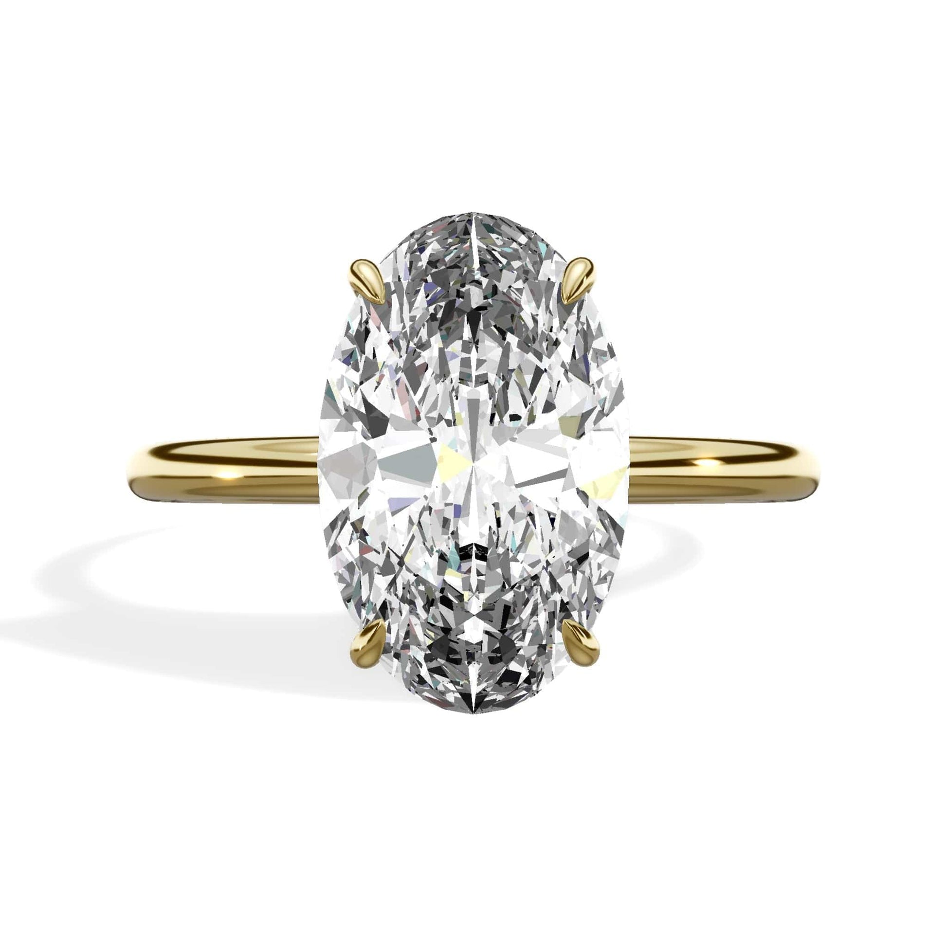 3.18 Carats Lab Grown Oval Cut Lab Grown Diamond Solitaire Hidden Halo Engagement Ring In Yellow Gold