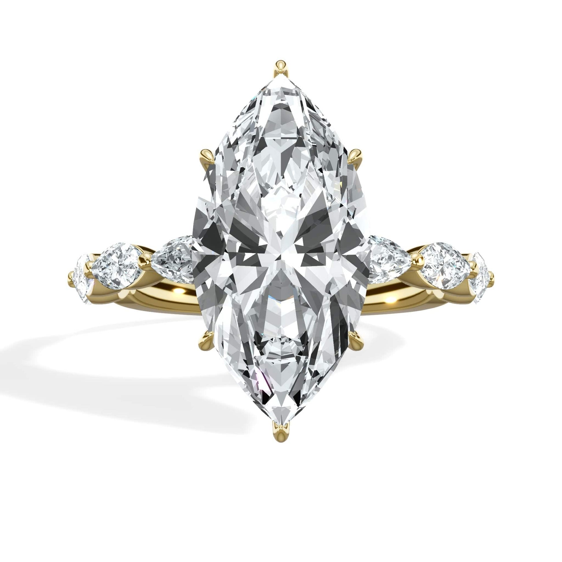 4.02 Carats Lab Grown Marquise Cut with Marquise Side Stones Hidden Halo Diamond Engagement Ring In Yellow Gold