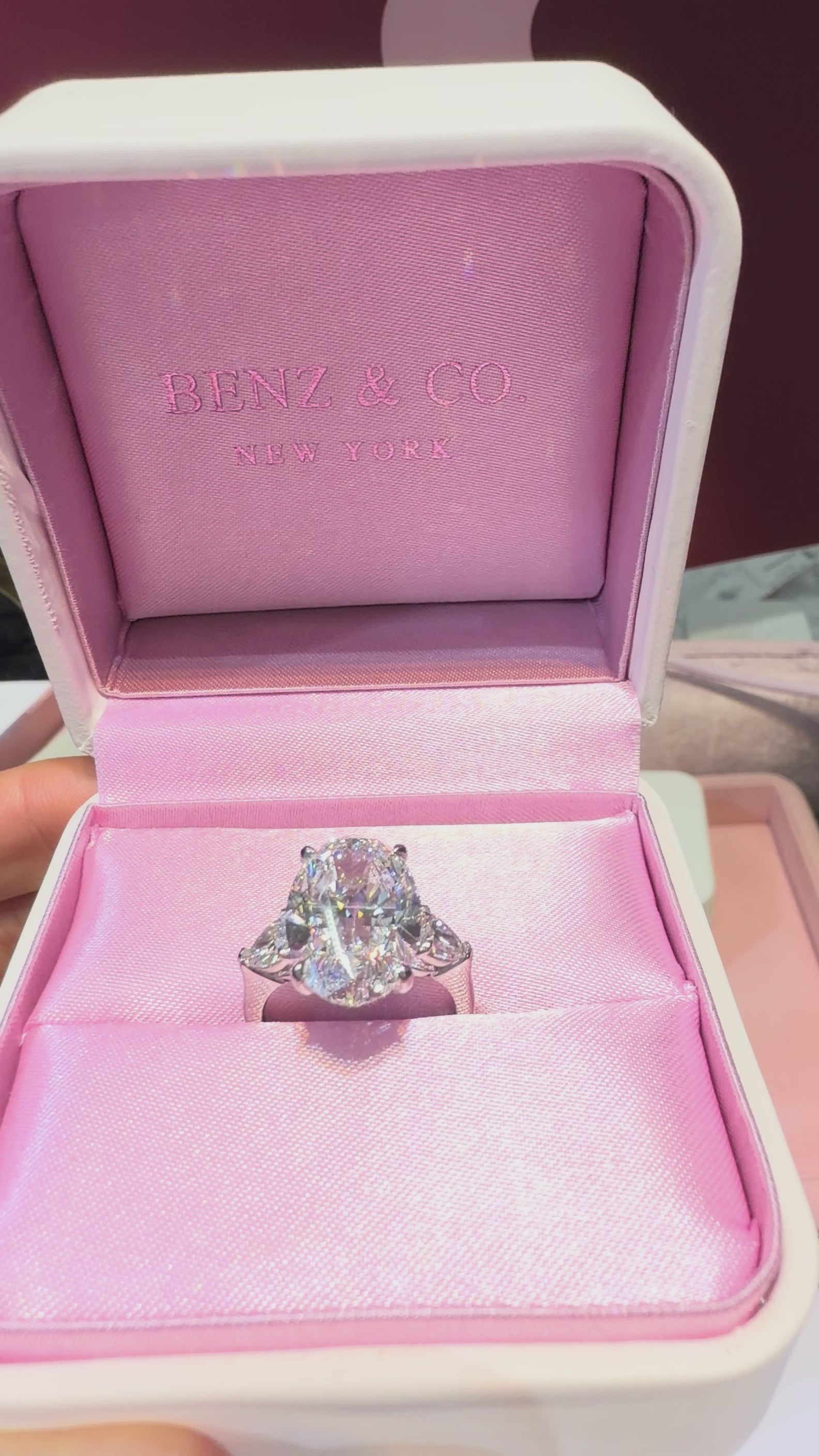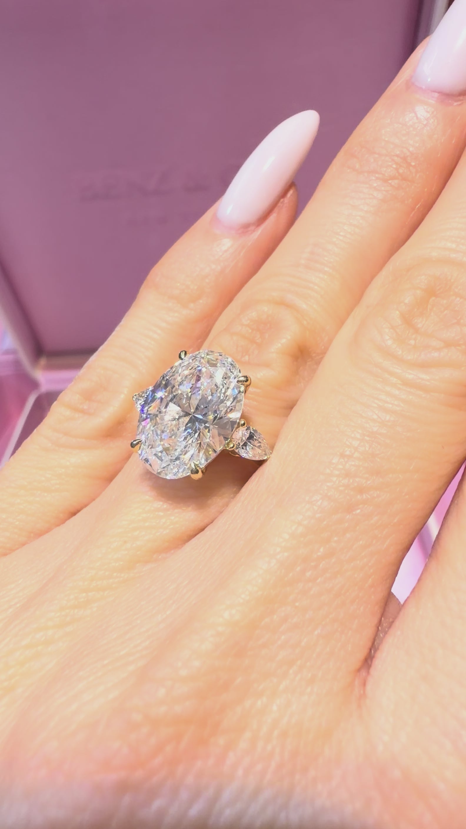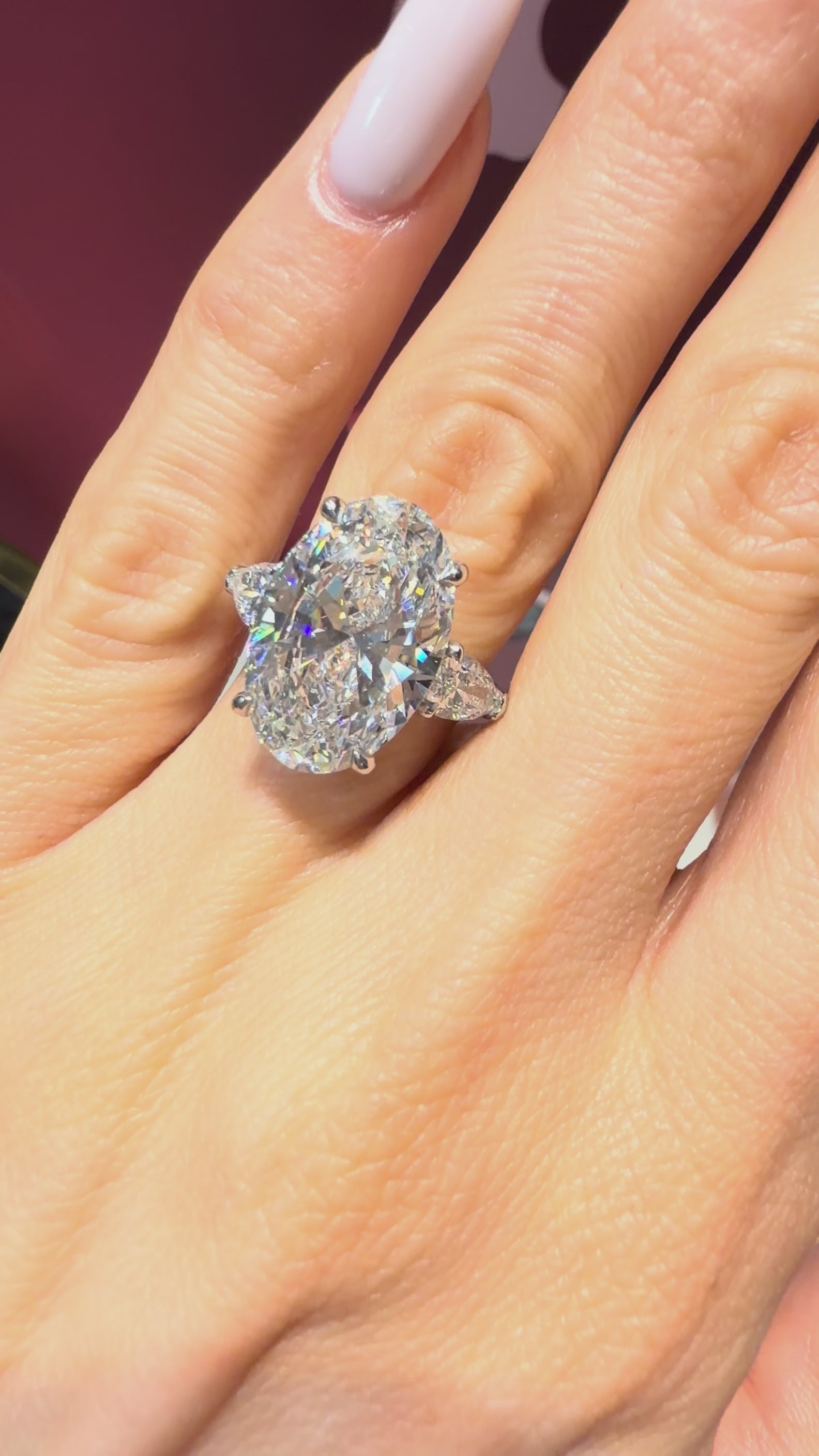 10.07 Carats Lab Grown Oval Cut with Pear Shape Side Stones Diamond Engagement Ring in Platinum