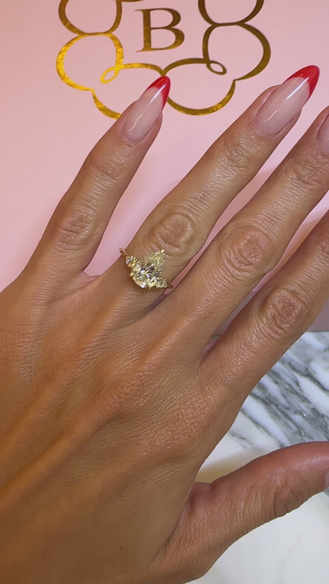 2.71 Carats Pear Shape with Pear Shape Side Stones Diamond Engagement Ring