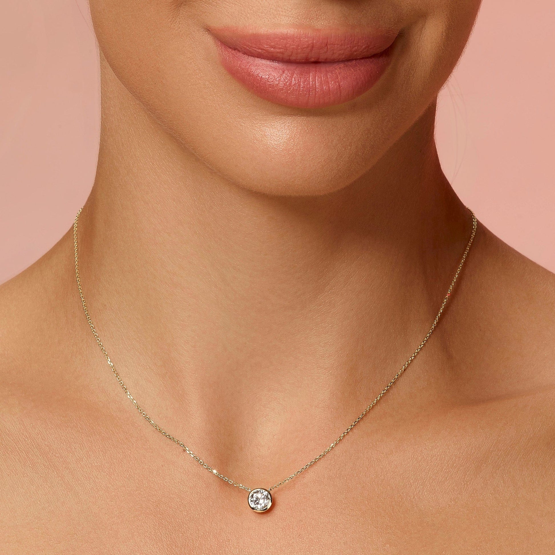 1 Carat Round Cut Bezel Set Lab Grown Diamond Solitaire Pendant Necklace