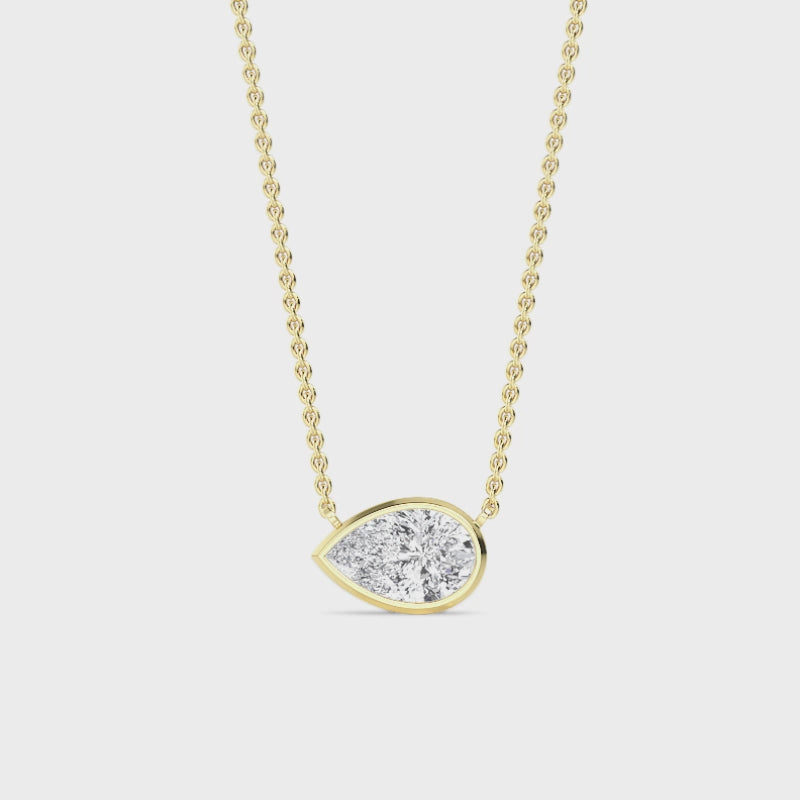 1 Carat Lab Grown Pear Shaped Bezel Set East-West Diamond Solitaire Pendant Necklace