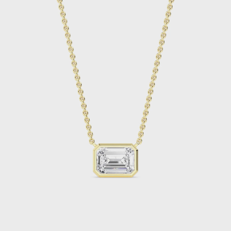1 Carat Lab Grown Emerald Cut Bezel Set East-West Diamond Solitaire Pendant Necklace