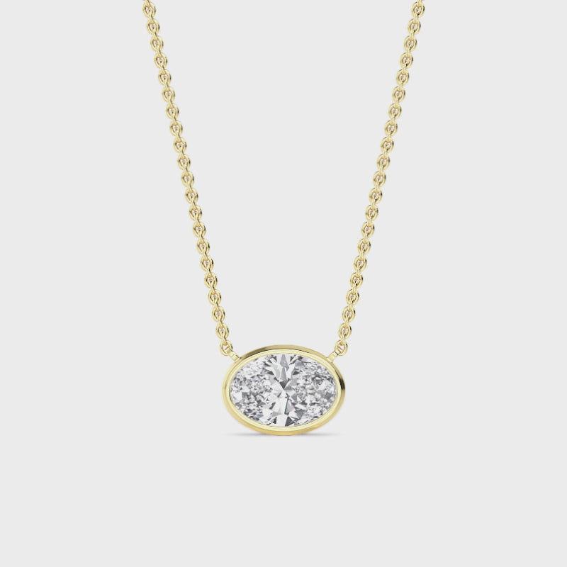 1 Carat Lab Grown Oval Cut Bezel Set East-West Diamond Solitaire Pendant Necklace