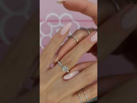 1.50 Carats Lab Grown Radiant Cut Micropaved Side Stones Hidden Halo Diamond Engagement Ring