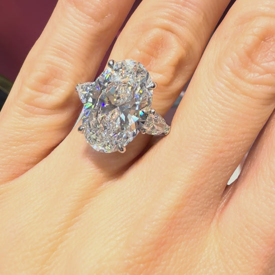 10.07 Carats Lab Grown Oval Cut with Pear Shape Side Stones Diamond Engagement Ring in Platinum