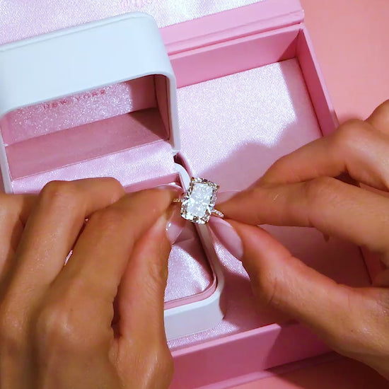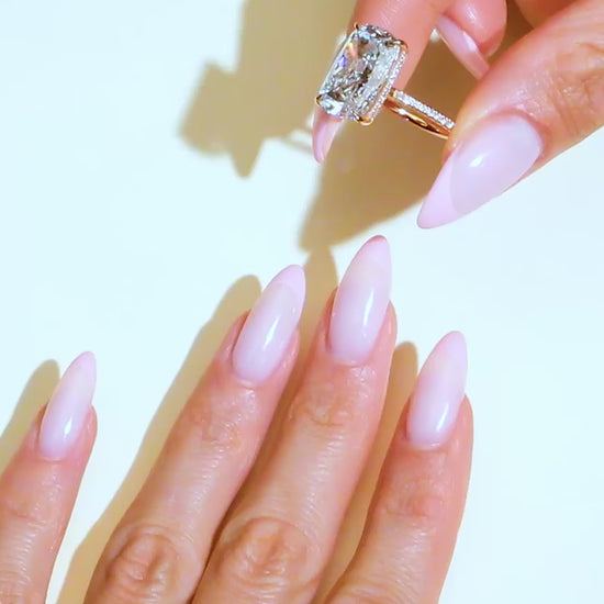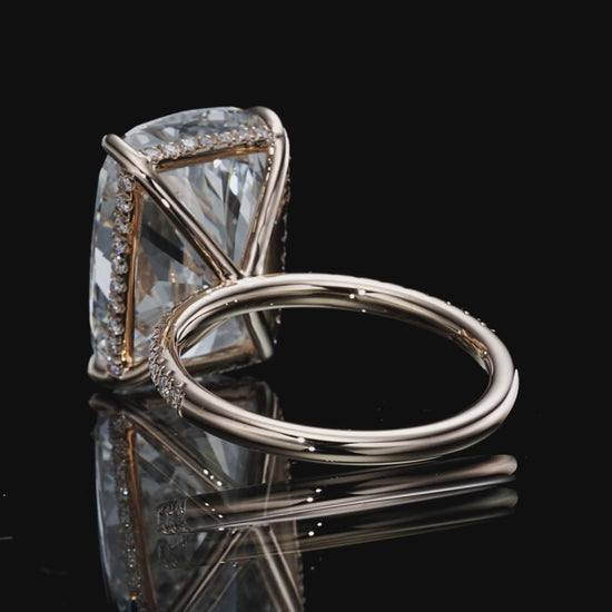 11.07 Carats Lab Grown Elongated Cushion Cut Micropaved Side Stones Hidden Halo Diamond Engagement Ring