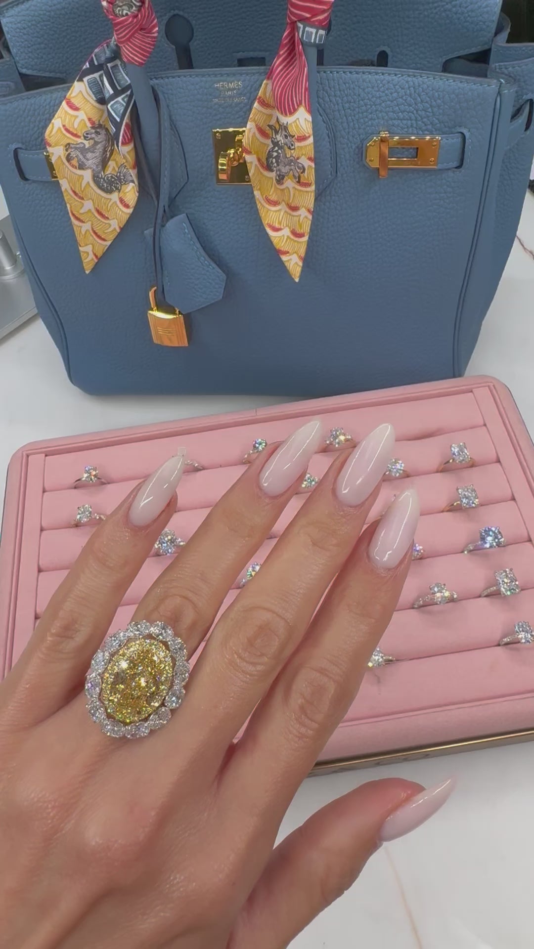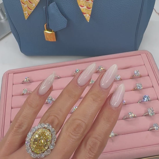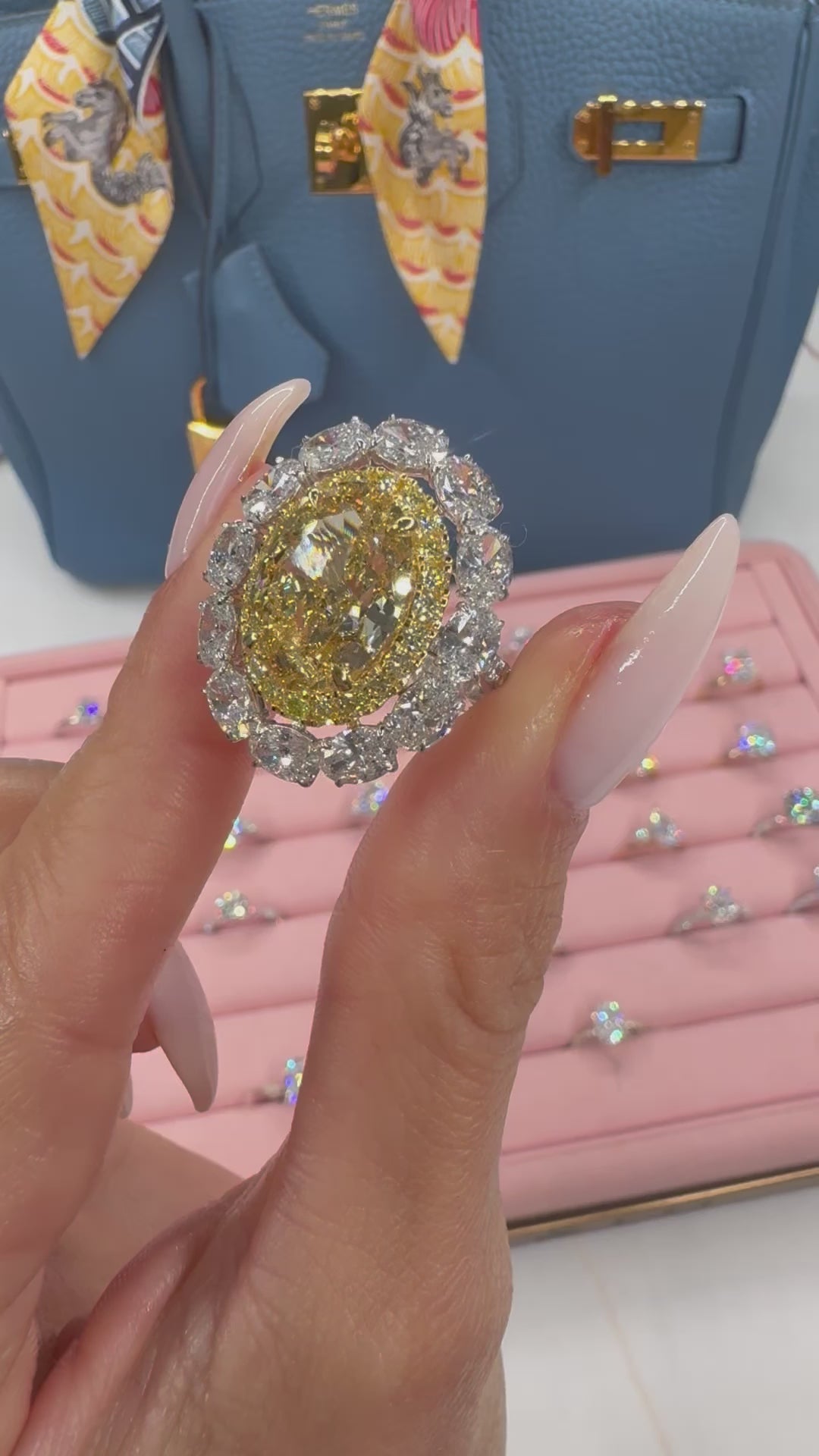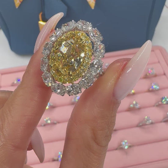 12.06 Carats Lab Grown Oval Cut Fancy Intense Yellow High Jewelry Diamond Engagement Ring