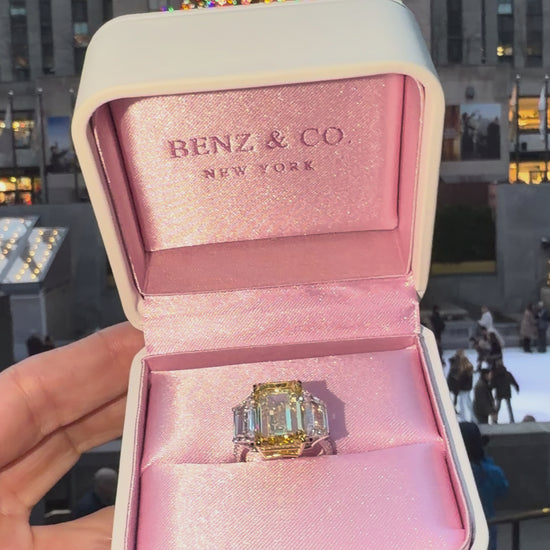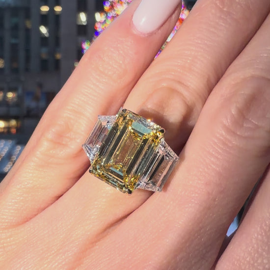 13.25 Carats Emerald Cut Fancy Intense Yellow High Jewelry Lab Grown Diamond Engagement Ring