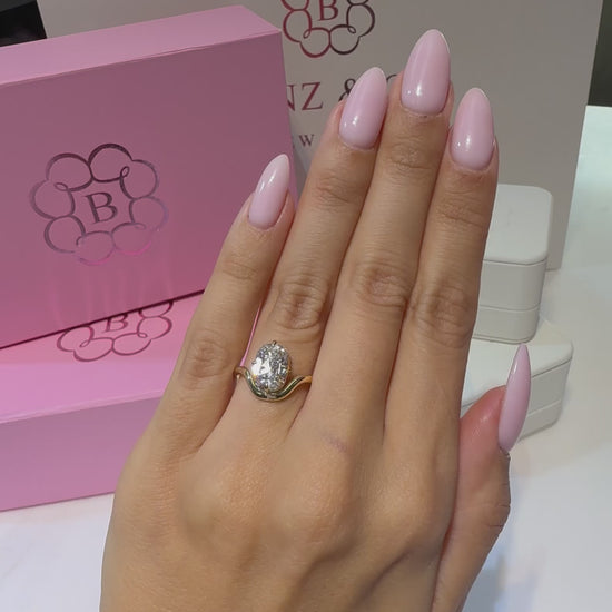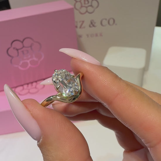 2.00 Carat Lab Grown Elongated Old Mine Cut Diamond Sinuous Solitaire Engagement Ring