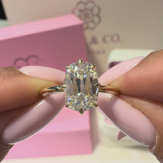 2.00 Carat Lab Grown Elongated Old Mine Cut Diamond Solitaire Engagement Ring