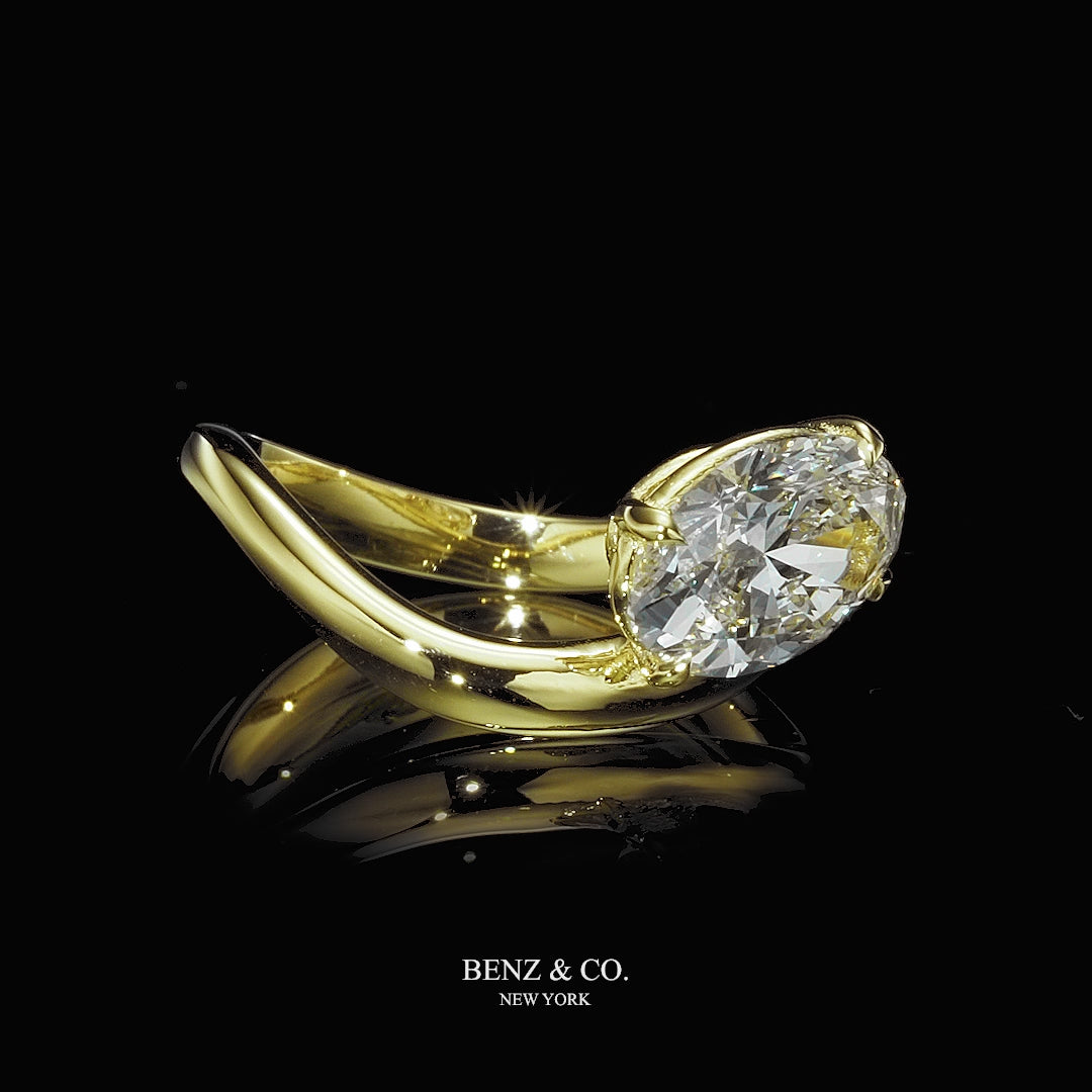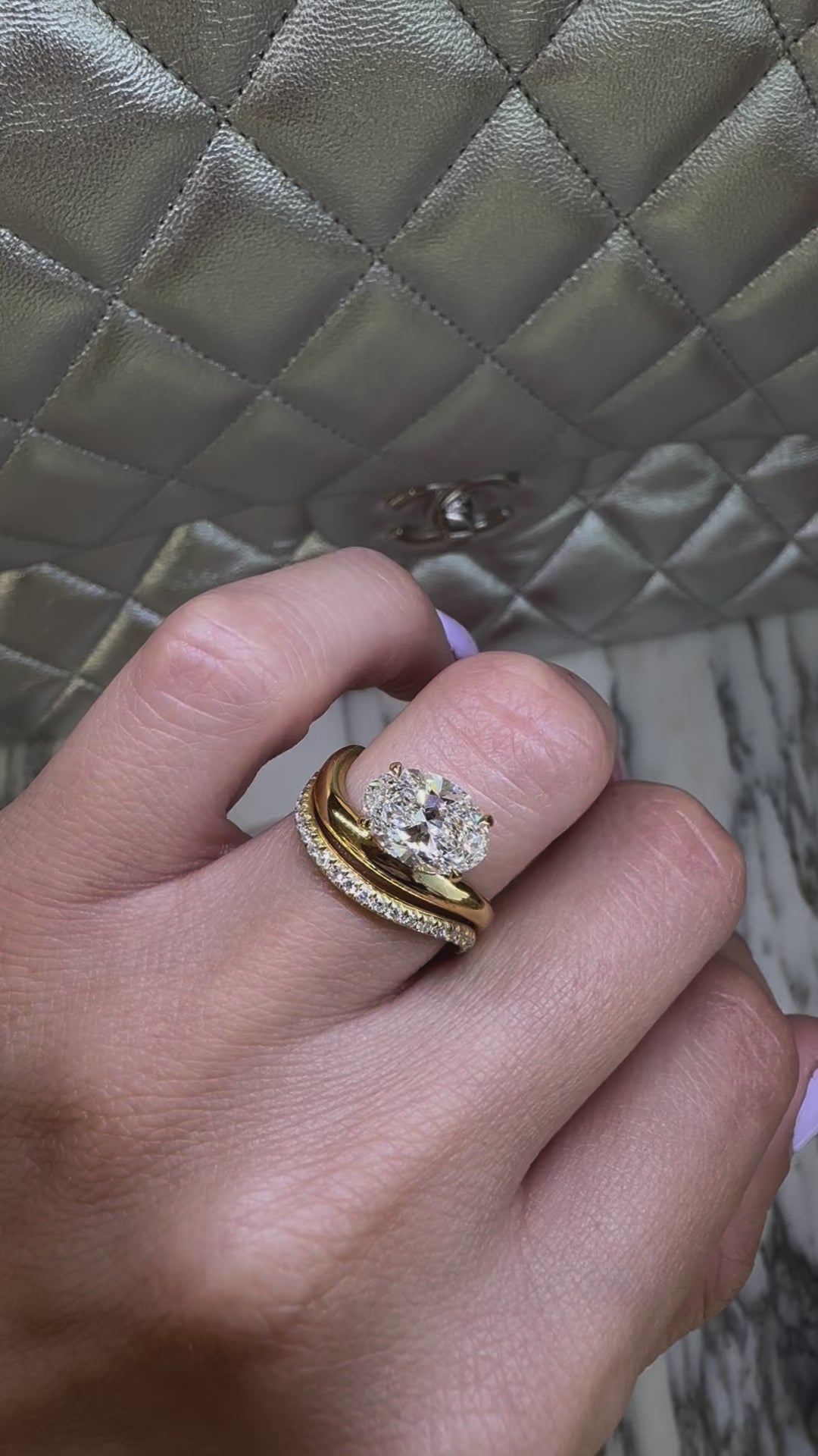 2.02 Carat Lab Grown Oval Cut Wave Diamond Engagement Ring in Yellow Gold