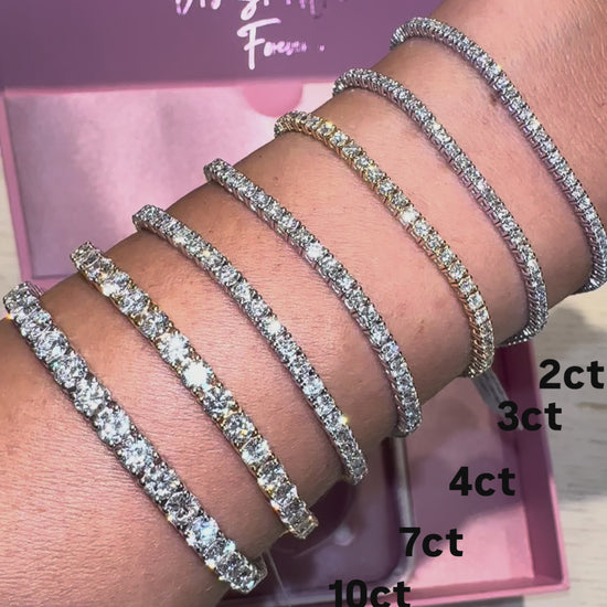 Choose from total carat weights ranging from 2 carats to 20 carats, from refined and delicate to bold, high-carat statement pieces. Whether you prefer an everyday sparkle or a luxurious larger look, each bracelet is crafted with precision and set with beautifully matched stones.
