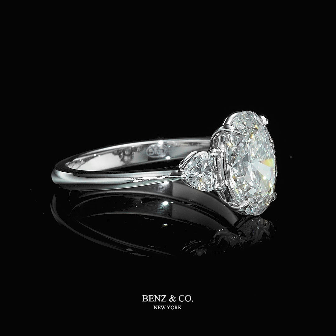 2.48 Carats Lab Grown Oval Cut with Heart Shape Side Stones Diamond Engagement Ring in White Gold