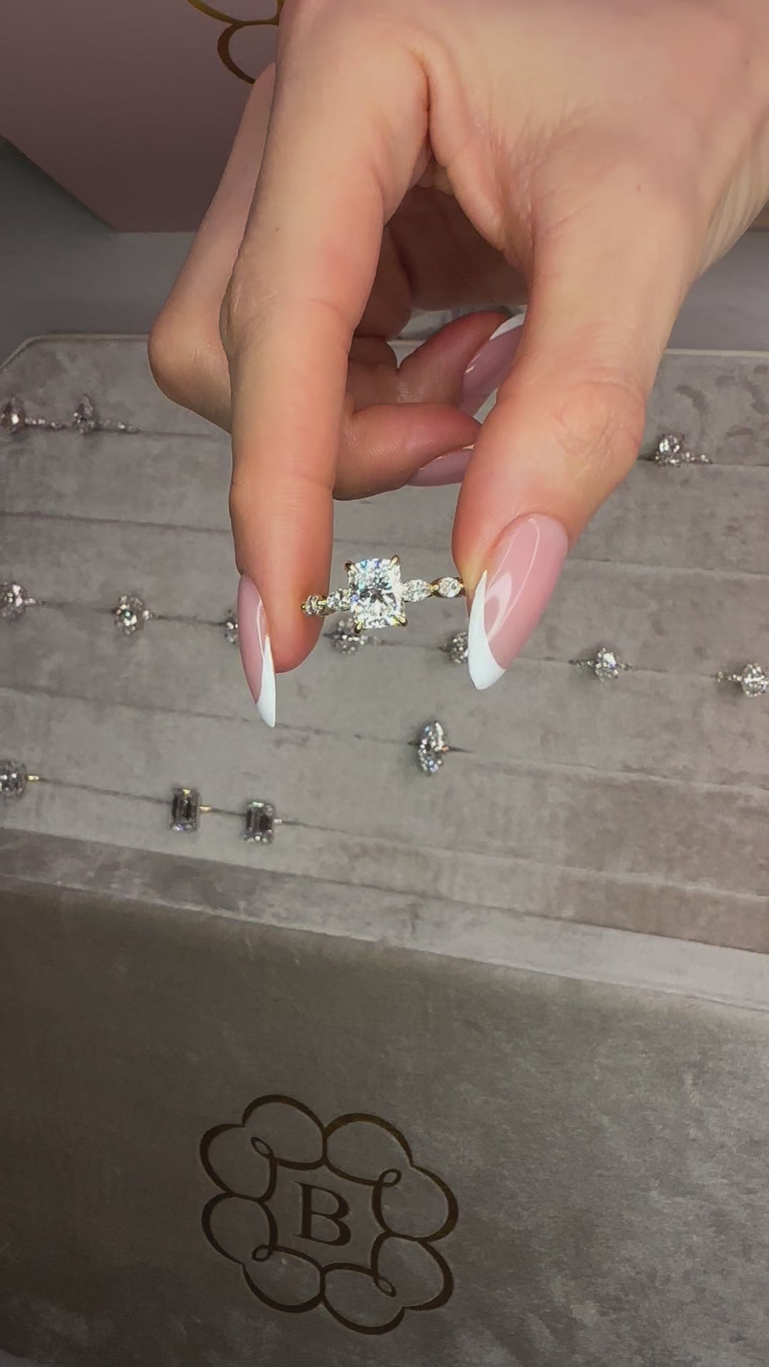 2.50 Carats Lab Grown Cushion Cut with Marquise Side Stones Hidden Halo Diamond Engagement Ring
