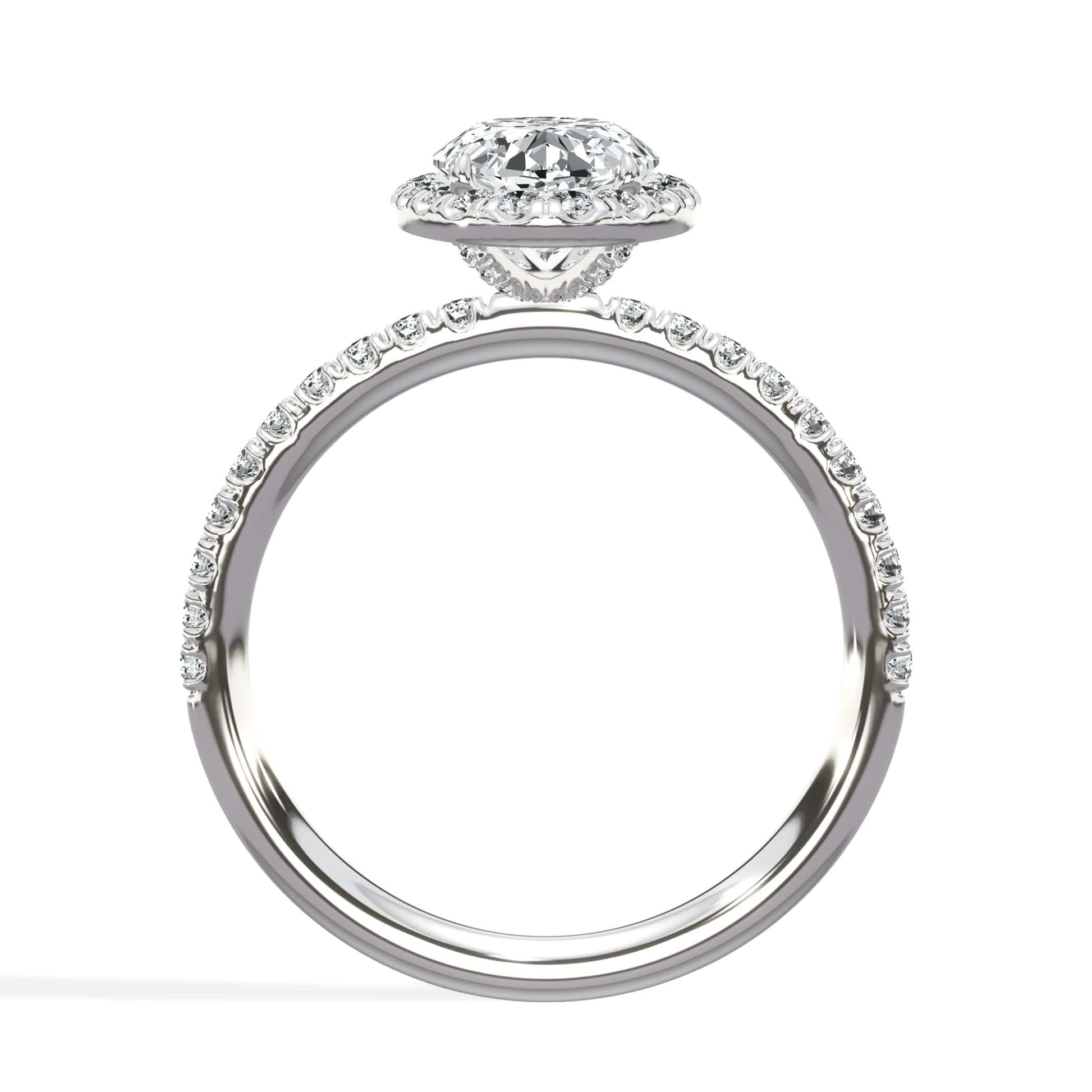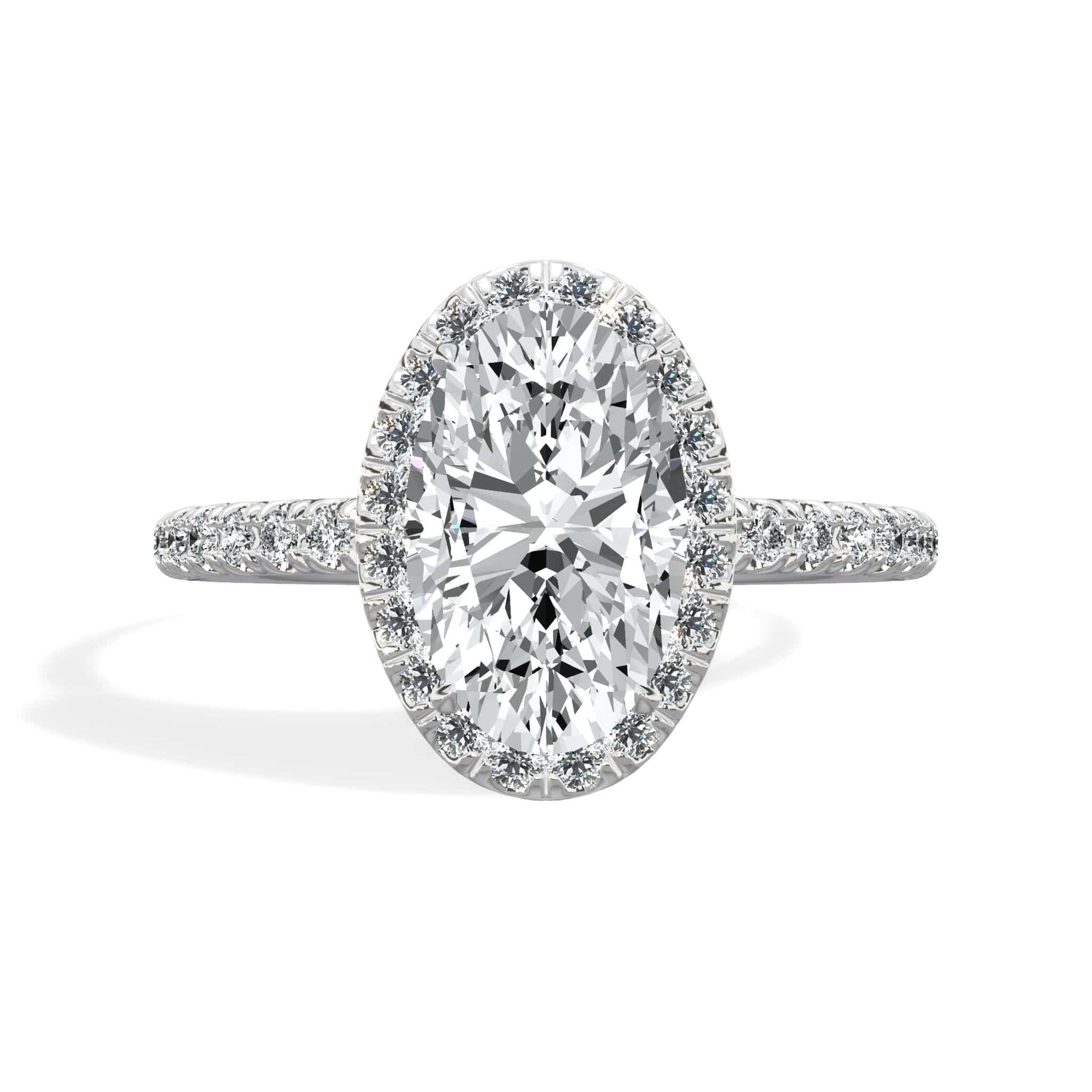 2 Carats Lab Grown Oval Cut Micropave Halo Side Stones Diamond Engagement Ring