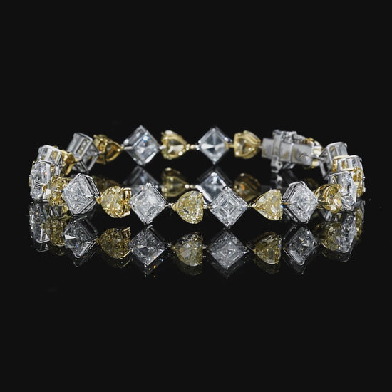 20.64ct Asscher & Fancy Intense Yellow Heart Diamond Tennis Bracelet