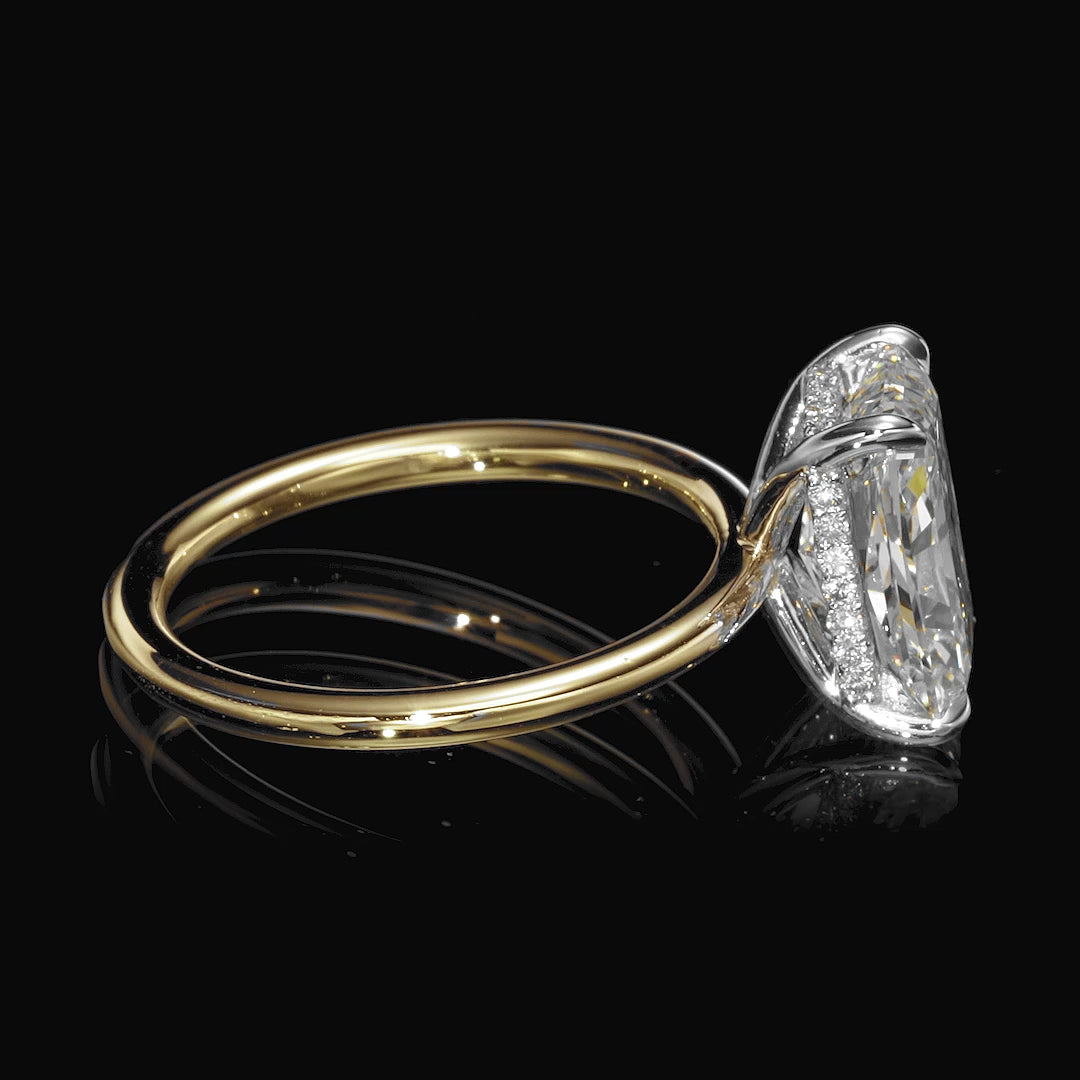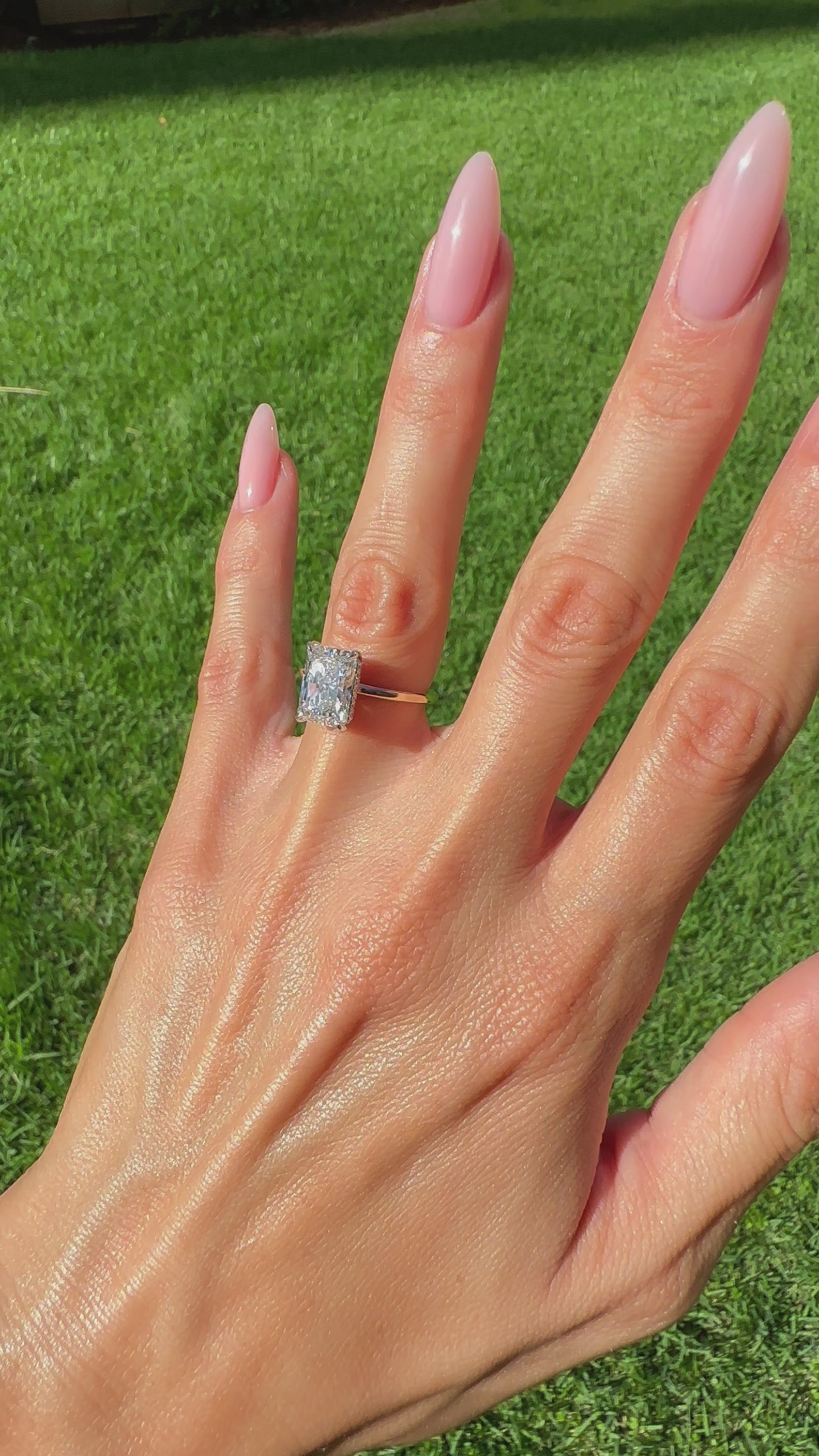 3.25 Carats Lab Grown Radiant Cut Two Tone Solitaire Hidden Halo Diamond Engagement Ring