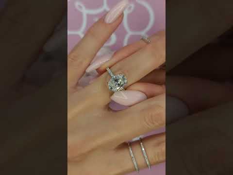 3.45 Carats Lab Grown Oval Cut Micropaved Side Stones Hidden Halo Diamond Engagement Ring