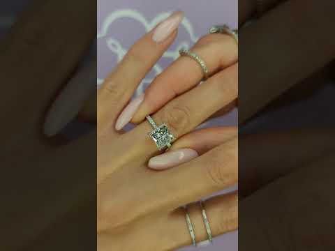 3.50 Carats Lab Grown Princess Cut Micropaved Side Stones Hidden Halo Diamond Engagement Ring