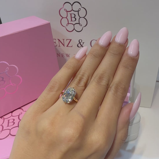3.80 Carat Lab Grown Elongated Old Mine Cut Diamond Compass Solitaire Engagement Ring