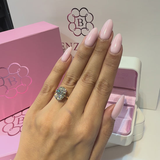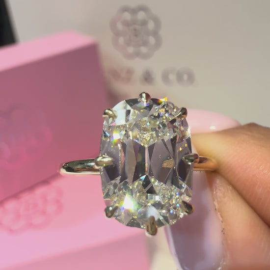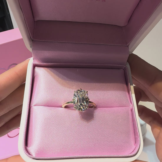 3.93 Carat Lab Grown Elongated Old Mine Cut Diamond Solitaire Engagement Ring
