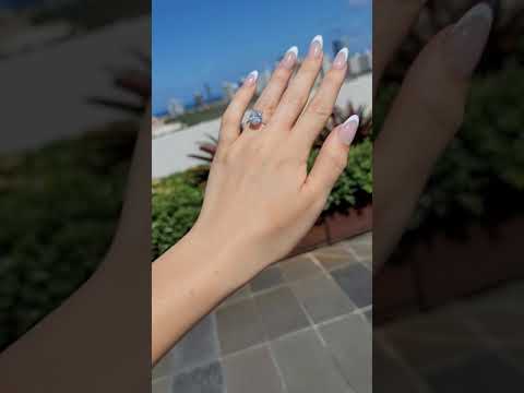 4.54 Carats Lab Grown Oval Cut Micropaved Side Stones Hidden Halo Diamond Engagement Ring